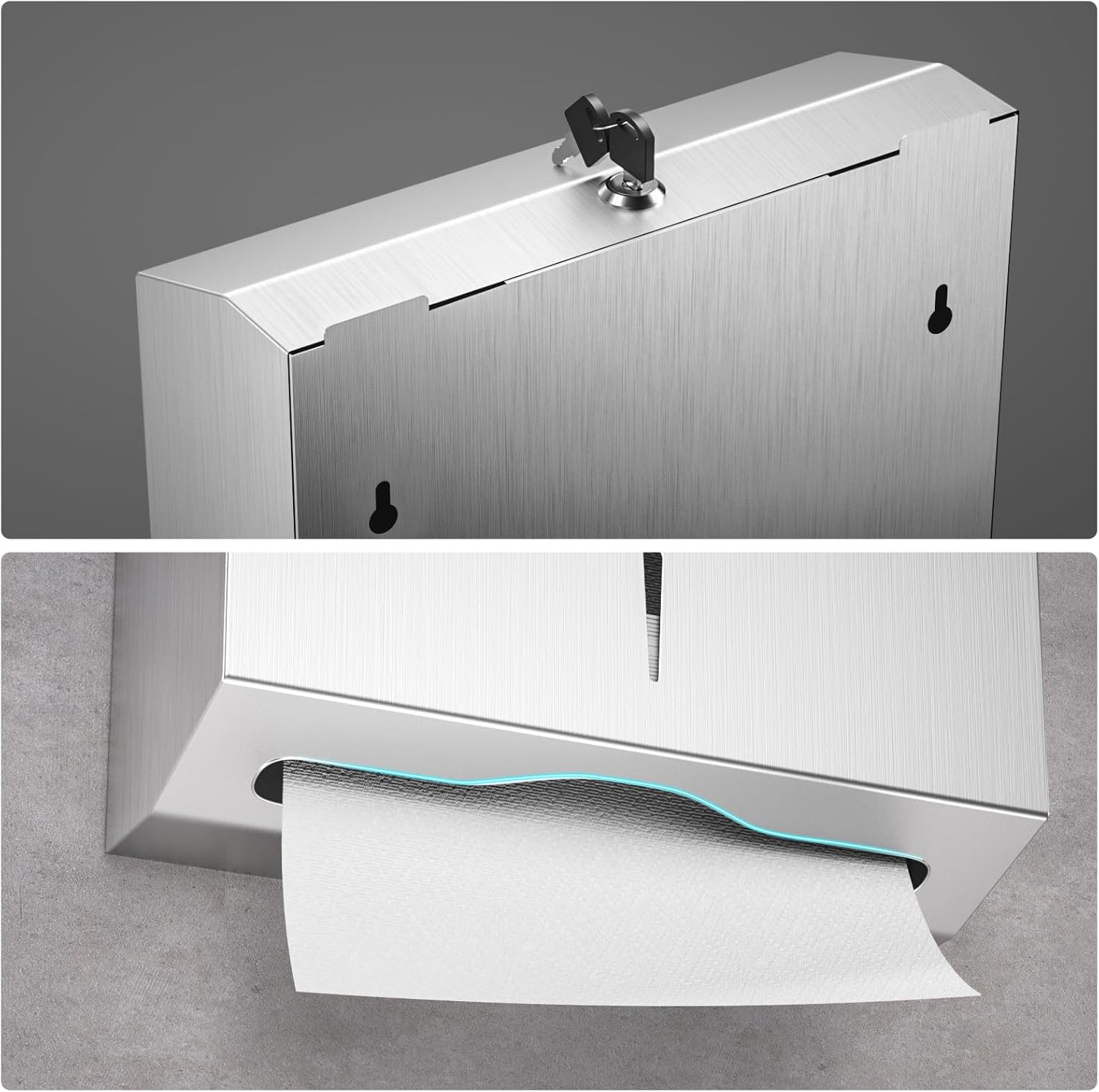 Paper Towel Dispenser Wall Mount Commercial, Stainless Steel Hand Towel Dispenser with Lock, c-fold/Multi-fold/Tri-fold Large Capacity Tissue Holder