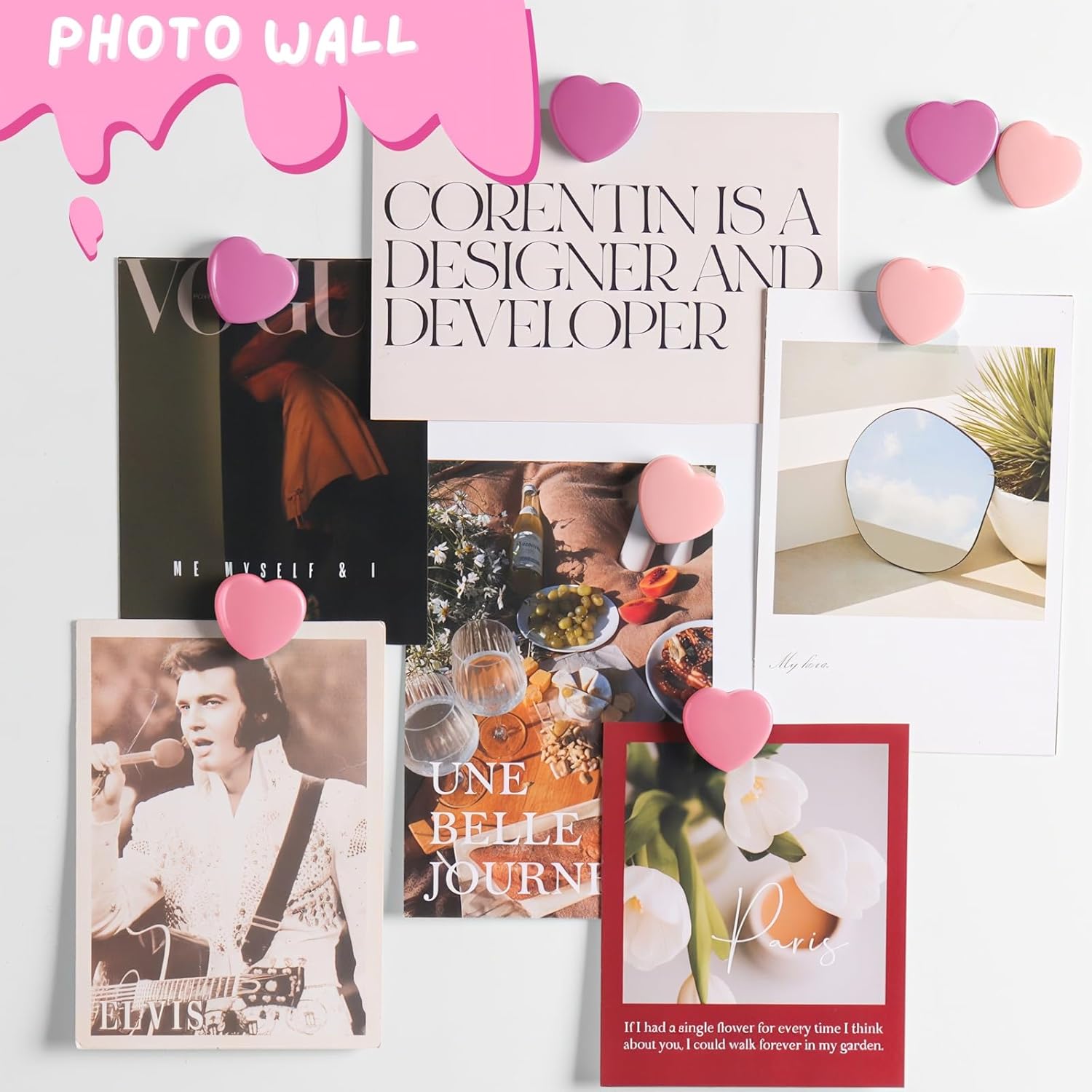 - đ¨ă3-Color Versatility & Small MagnetsăPYJLBX magnets refrigerator includes 30 adorable heart-shaped heavy duty magnets in a curated blend of 3 harmonizing colors from the same family. Mini magnets are perfect for creating stylish gradients or color-coding tasks! These cute magnets cling securely to refrigerators, whiteboards, metal lockers, and kitchen appliances, holding photos, memos, or kidsâ artwork without slipping. Strong magnet is ideal for adding a pop of personality to bland surfaces