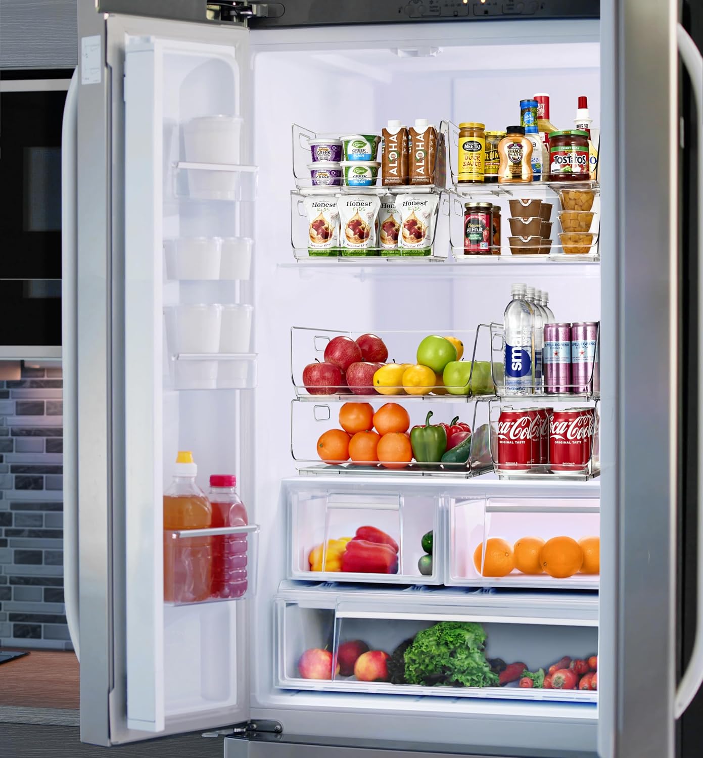 - Versatile Use: Great for storing fruits, veggies, packaged goods, yogurts, canned goods, drink boxes, baby food, condiments, cleaning supplies, bath products, makeup, and more. Versatile use as clear open front storage bins, stackable food storage bins, stackable kitchen storage, clear plastic bins for pantry, stackable cabinet storage bins, stackable bins for pantry, open bin storage basket, and stackable pantry bins