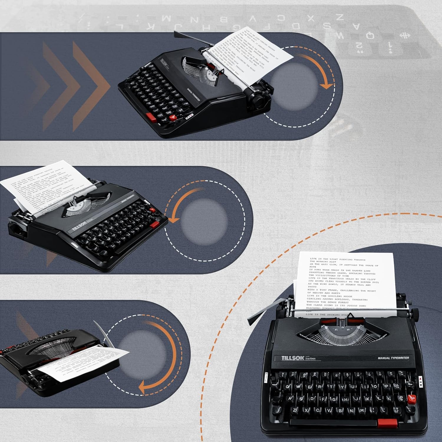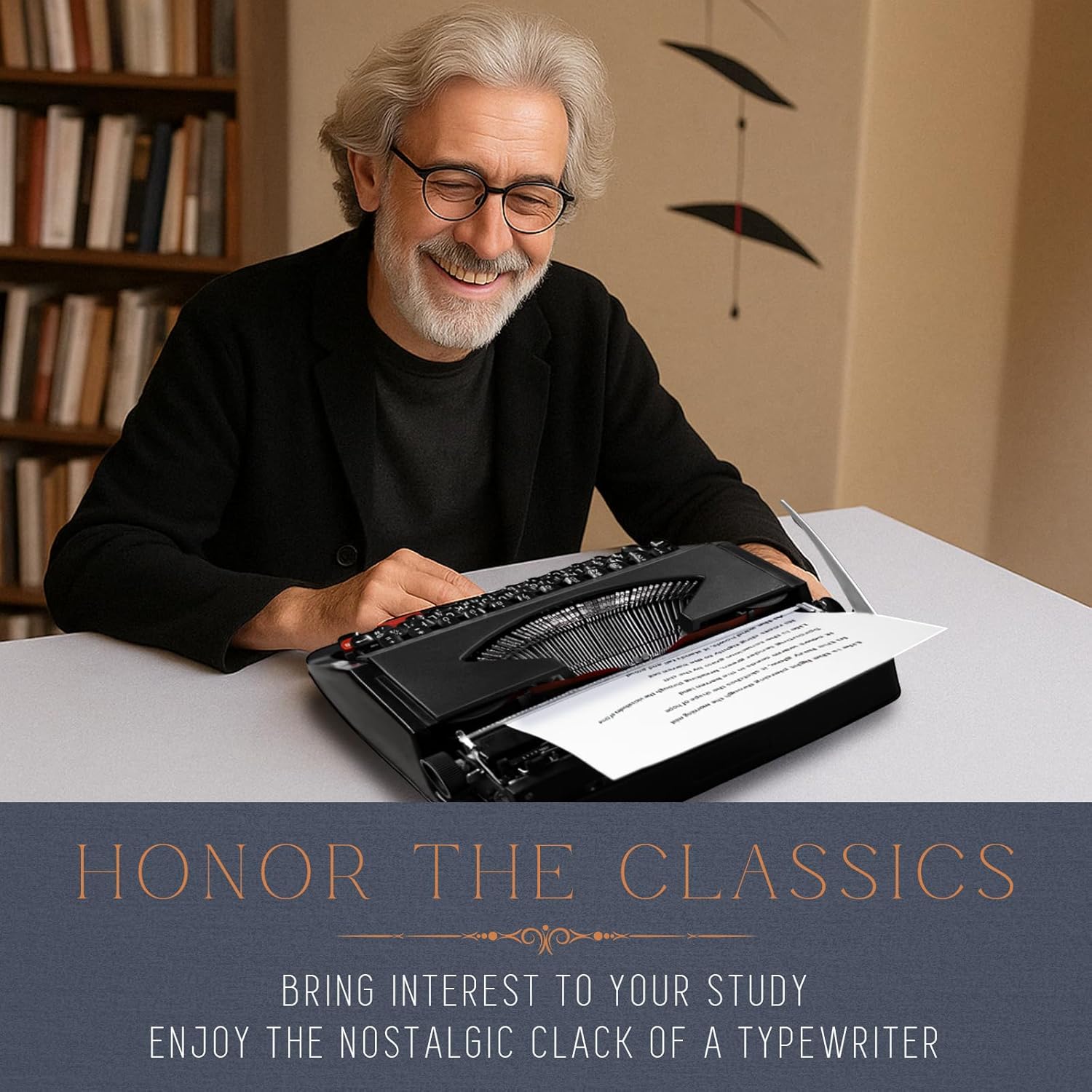 Manual Typewriter Machine – Vintage Portable Typewriter for Typing Letters – Classic Black Type Writer for Kids, Authors, and Retro Enthusiasts – Gift for Writers and Collectors
