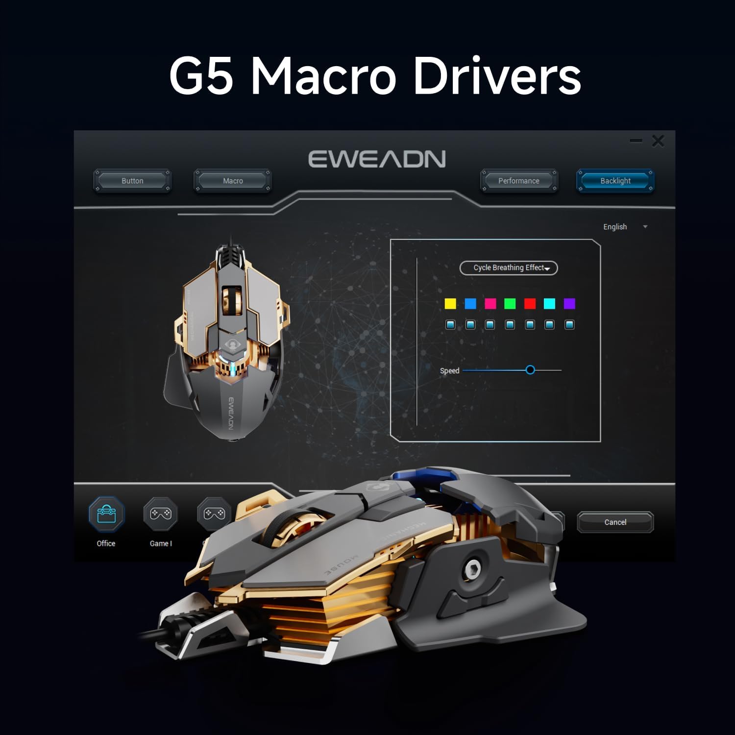 - 6-Level Adjustable DPI: The EWEADN G5 computer mouse features up to 12,800 DPI with 6 adjustable levels and an ultra-fast report rate (125–1000Hz), meeting your multiple needs, either for daily work or gaming. Dedicated demand for DPI options between 2000-12800 is available to be processed by software.