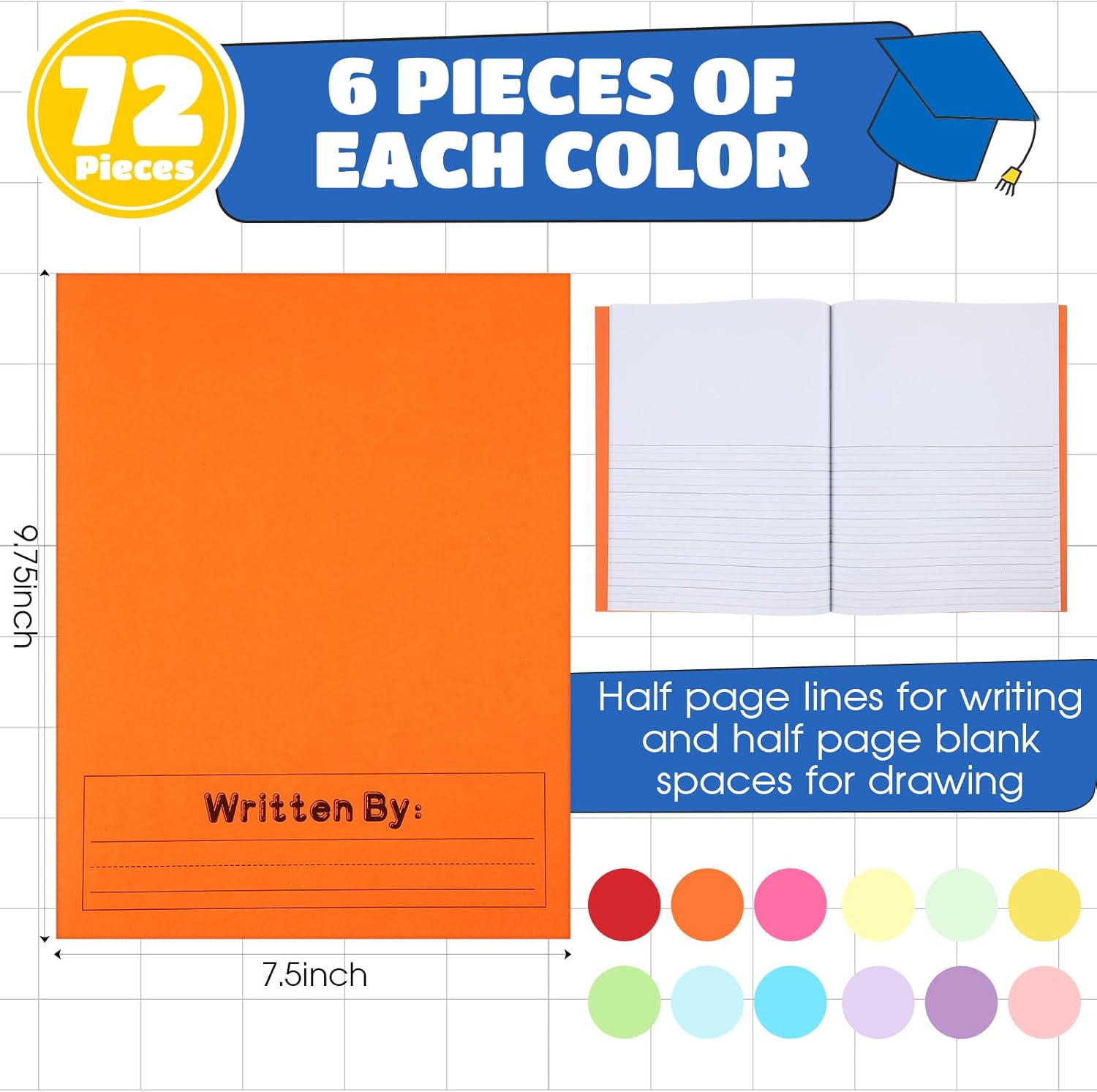Henoyso 72 Pcs Primary Composition Notebook K-2 9 3/4 x 7 1/2 Inch Primary Journal, Back to School Supplies, Bulk Blank Writing Book for Kid to Write Draw Journal 60 Page Notebooks (Vibrant Color)