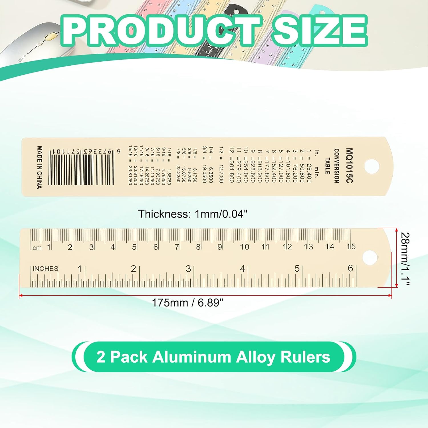- Specification: Color: Yellow; Material: Aluminum Alloy; Mileage: 15cm/6"; Total Length: 175mm / 6.89 inch; Width*Thickness: 28 x 1mm / 1.1 x 0.04 inch; Packing List: 2 Pack x Aluminum Alloy Rulers