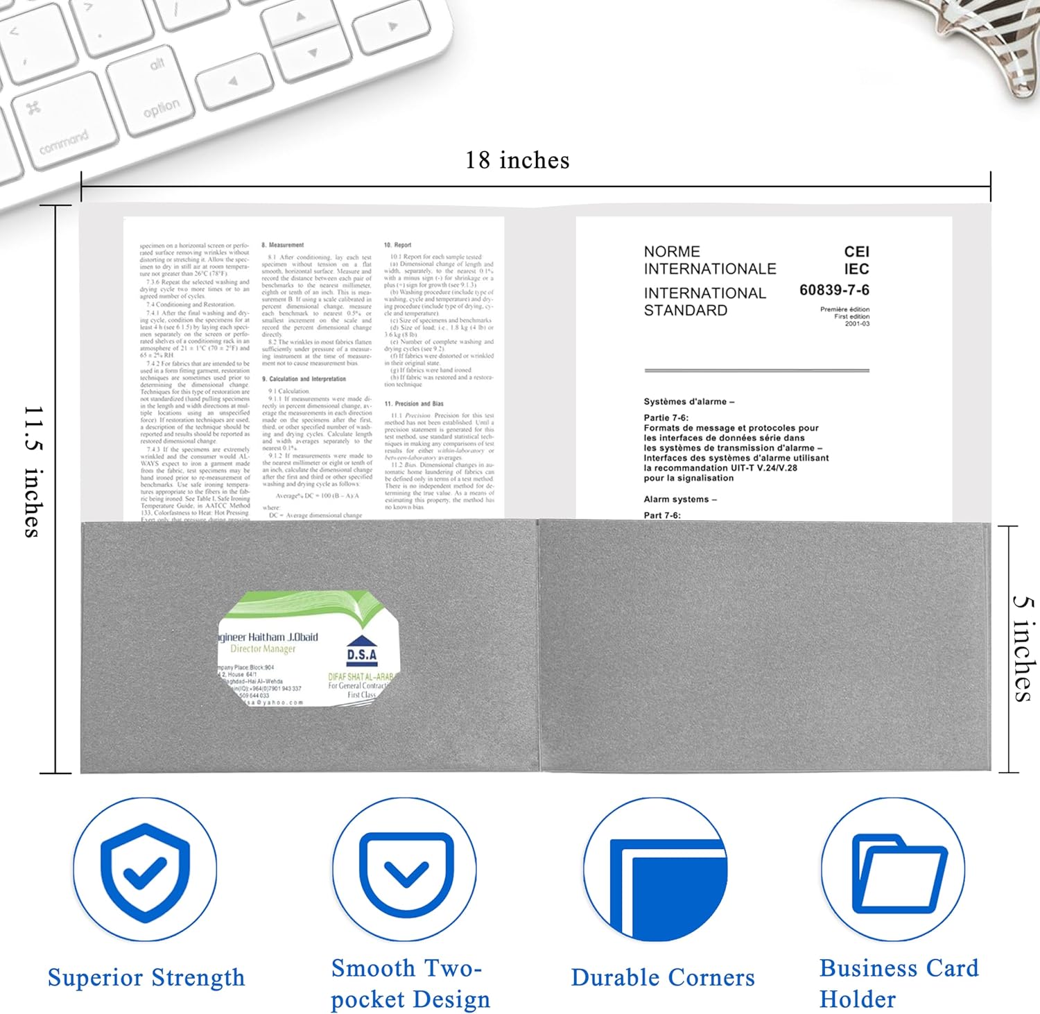 - Professional Design:Two pockets provide storage space for paper,brochures,and more,Each folders for documents measures 9" x 11.5",with two 5" pockets,holds (over 100) sheets of paper,and has a universal business card holder on the right pocket.