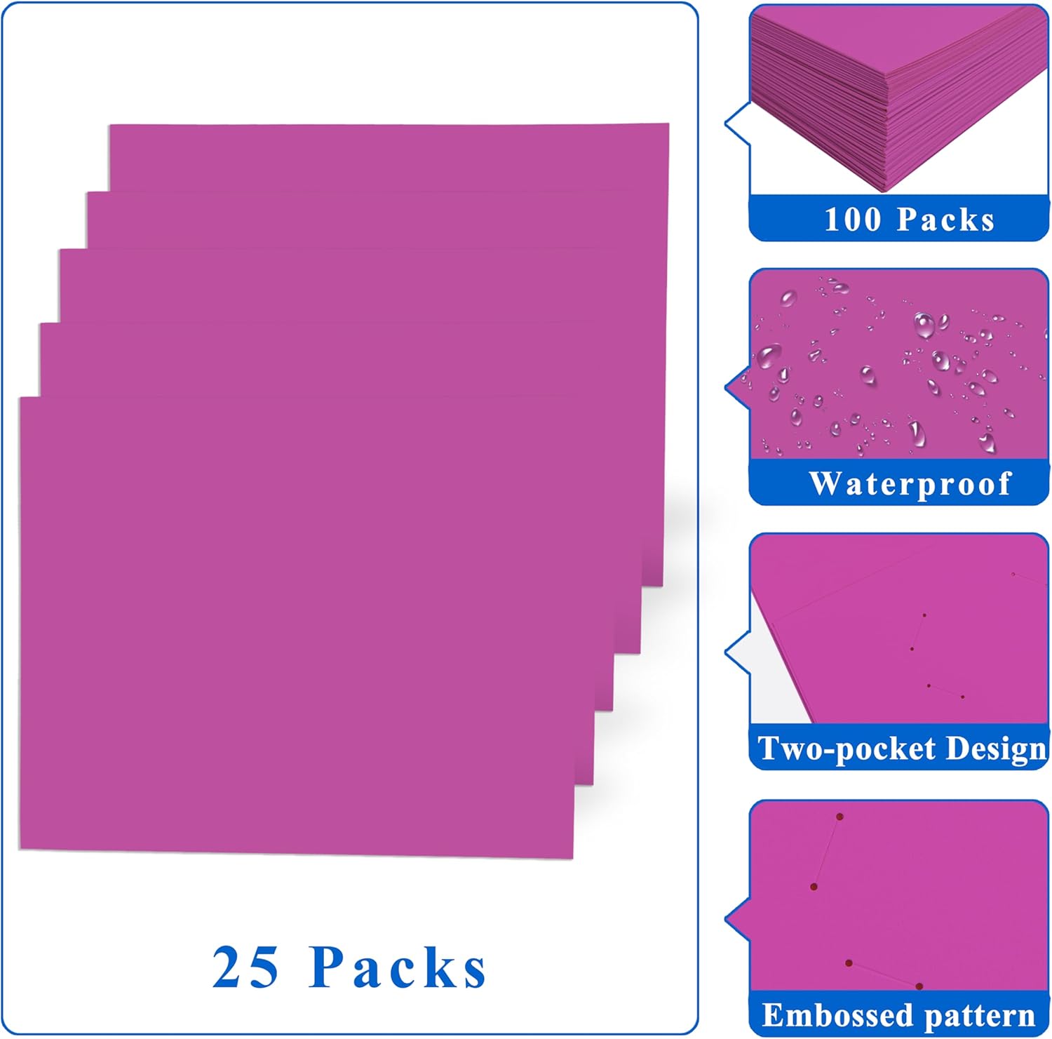 Zzrywuty 50 Packs Heavy Duty 2 Pocket Folders with Business Card Slot,Holds 100 Sheets Fits Letter Size File Folder Presentation Folder for School,Office,Home(Rose Purple)