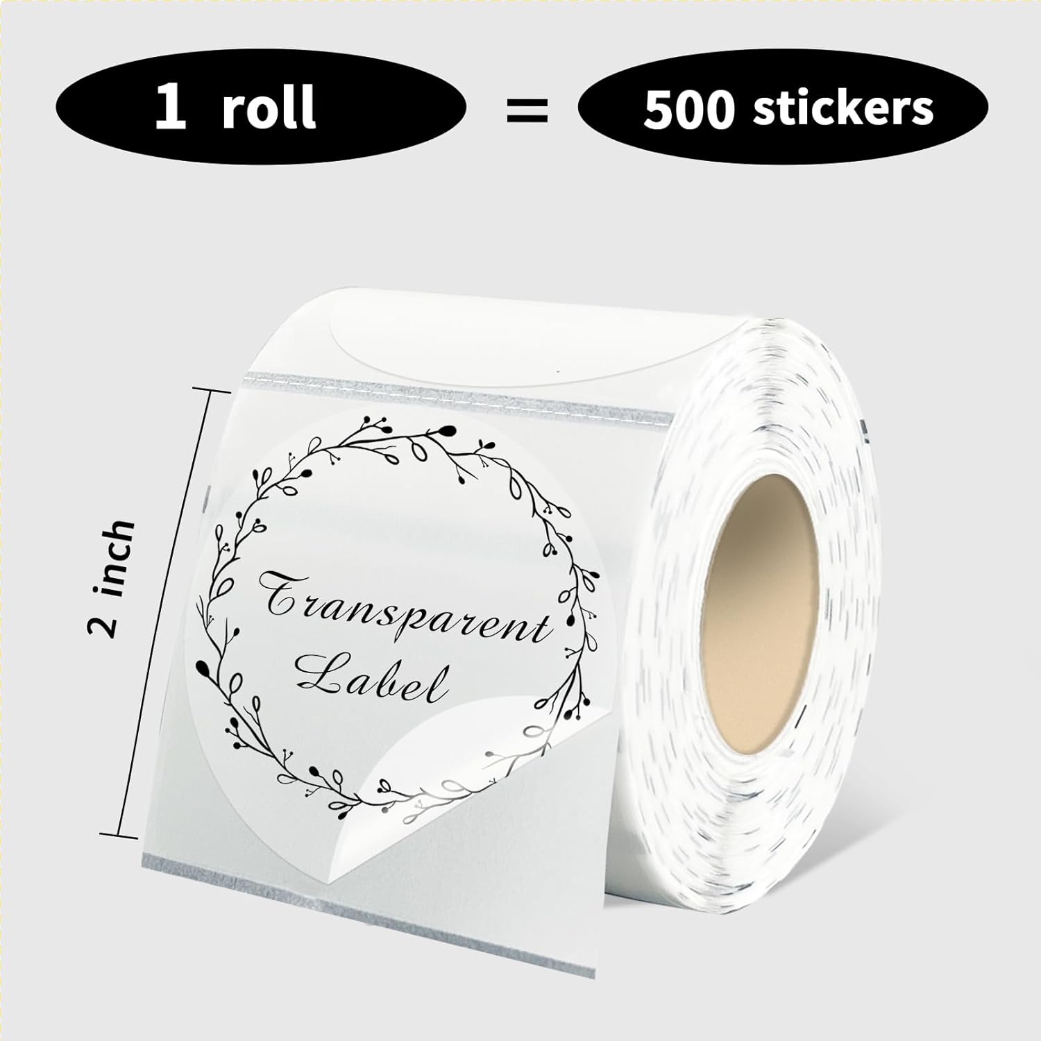 2" Round Transparent Thermal Label Stickers,Self-Adhesive Direct Clear Thermal Labels,500 Sheets with Perforation Line in ROLL