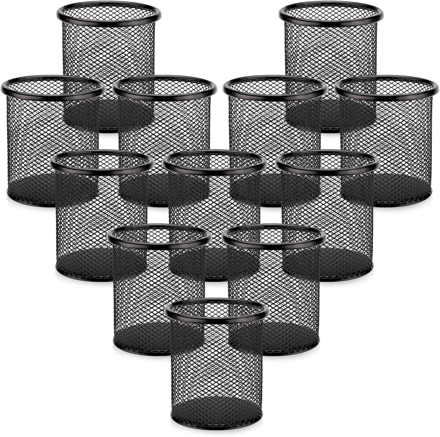 Segarty Pen Cup Holder for Desk, 12 Pack Black Pencil Holder, Round Wire Mesh Pen Container Set for Office Supply, School Classroom, Home Desktop Accessories, Makeup Brush Organizer
