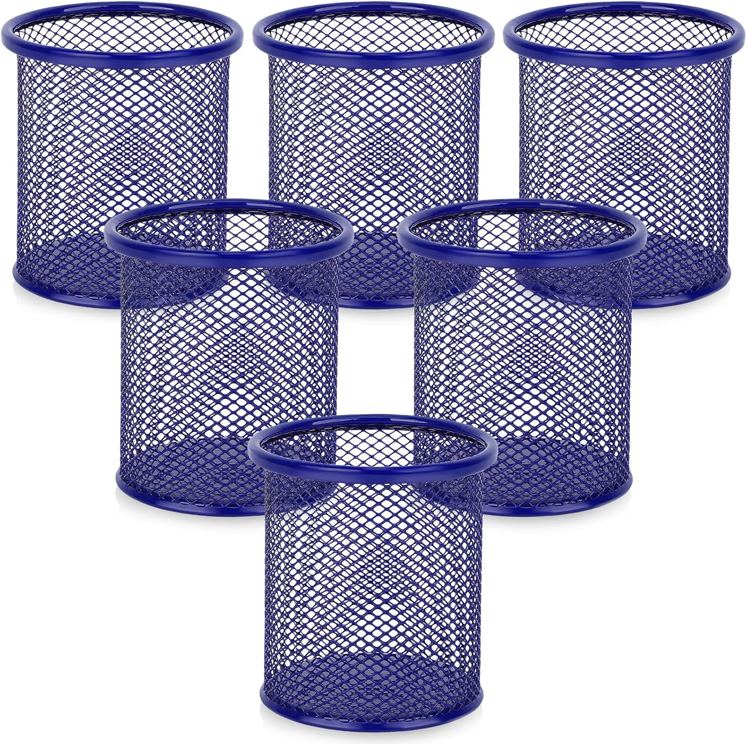 Segarty Pen Cup, 6 Pack Round Cute Dark Blue Pen Holder for Desk, Wire Mesh Pencil Holder Container Set, Desktop Organizer for Office Supplies, Maker, School, Home Storage, Makeup Brush