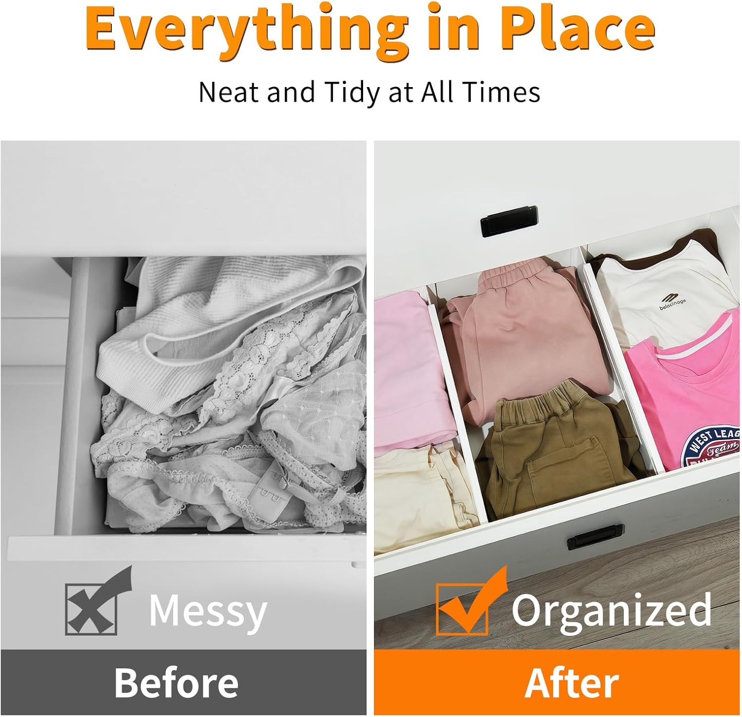 - Quick Install & Reusable for Renters: Damage-free setup in seconds! Stretch, slide, and lock these adjustable drawer dividers—child-safe edges and lightweight design perfect for dorms/apartments. Withstand daily wear; reposition endlessly for clutter-free drawers!