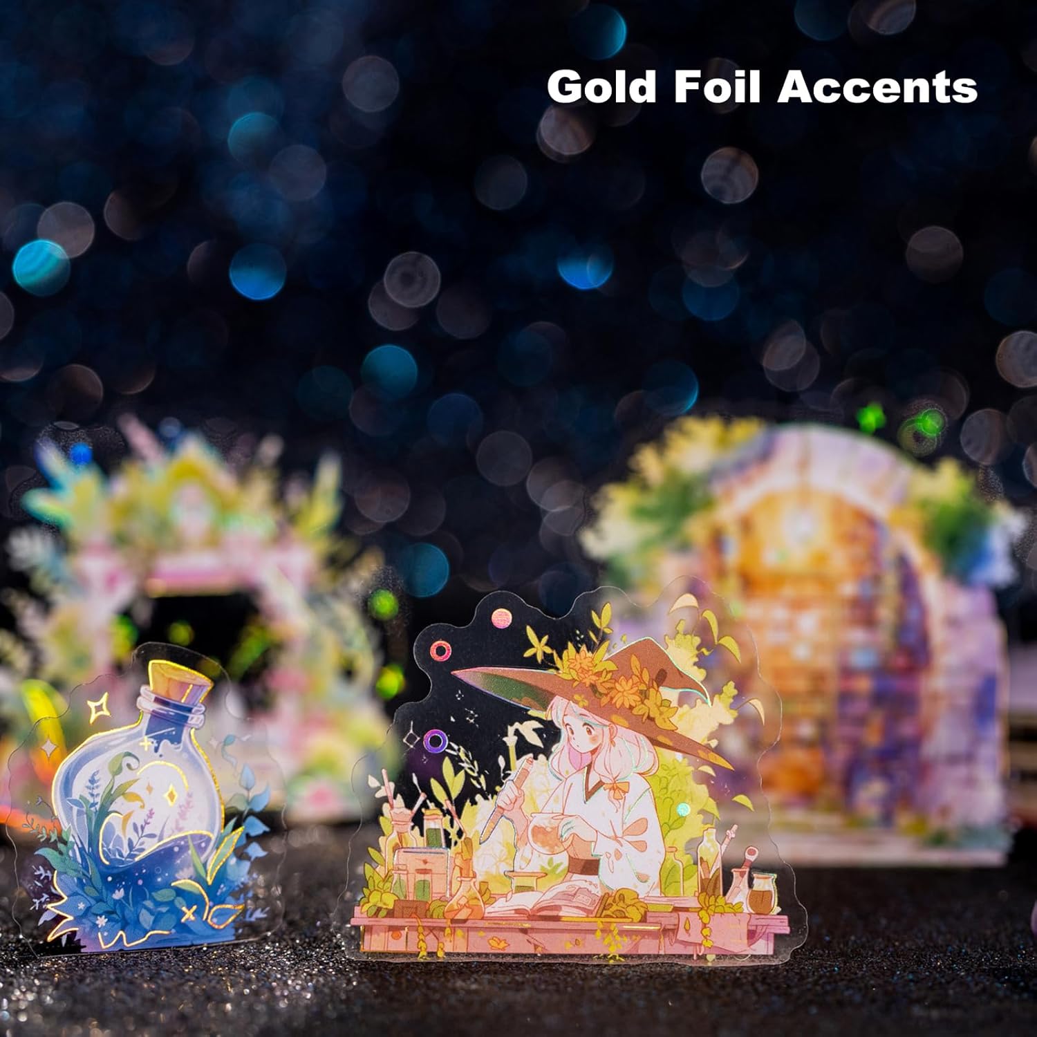 - Whimsical Designs: Each set features 4 enchanting themes inspired by magical tales, including witches, spell books, potions, castles, and enchanted creatures. With 20 unique illustrations per style and 80 stickers in total, they add fantasy charm to journals and scrapbooks