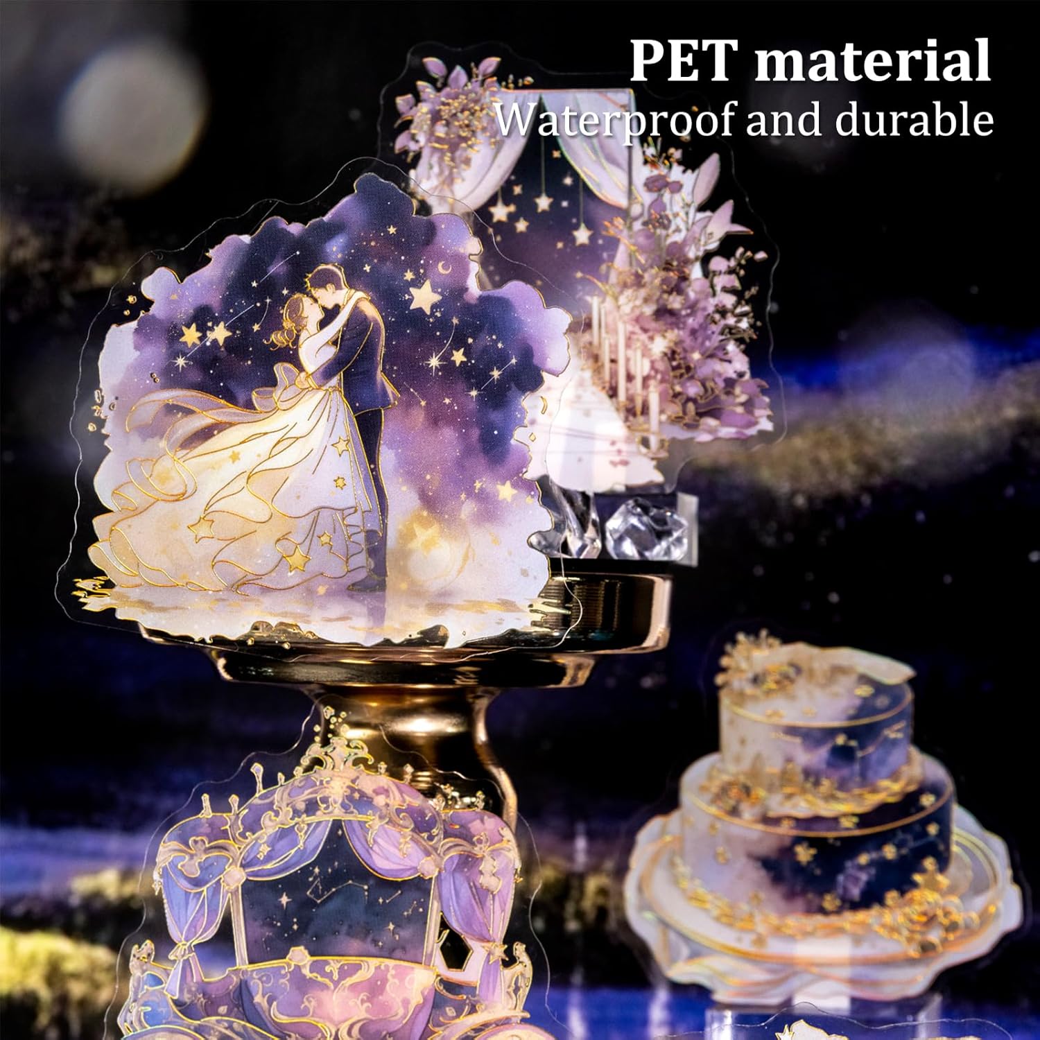 - Whimsical Fantasy Designs: Features 6 dreamy styles with 10 unique designs in each, including celestial girls, moonlit cats, butterflies, floral wreaths, and magical scenes, totaling 60 PET stickers to enrich your journal and scrapbook