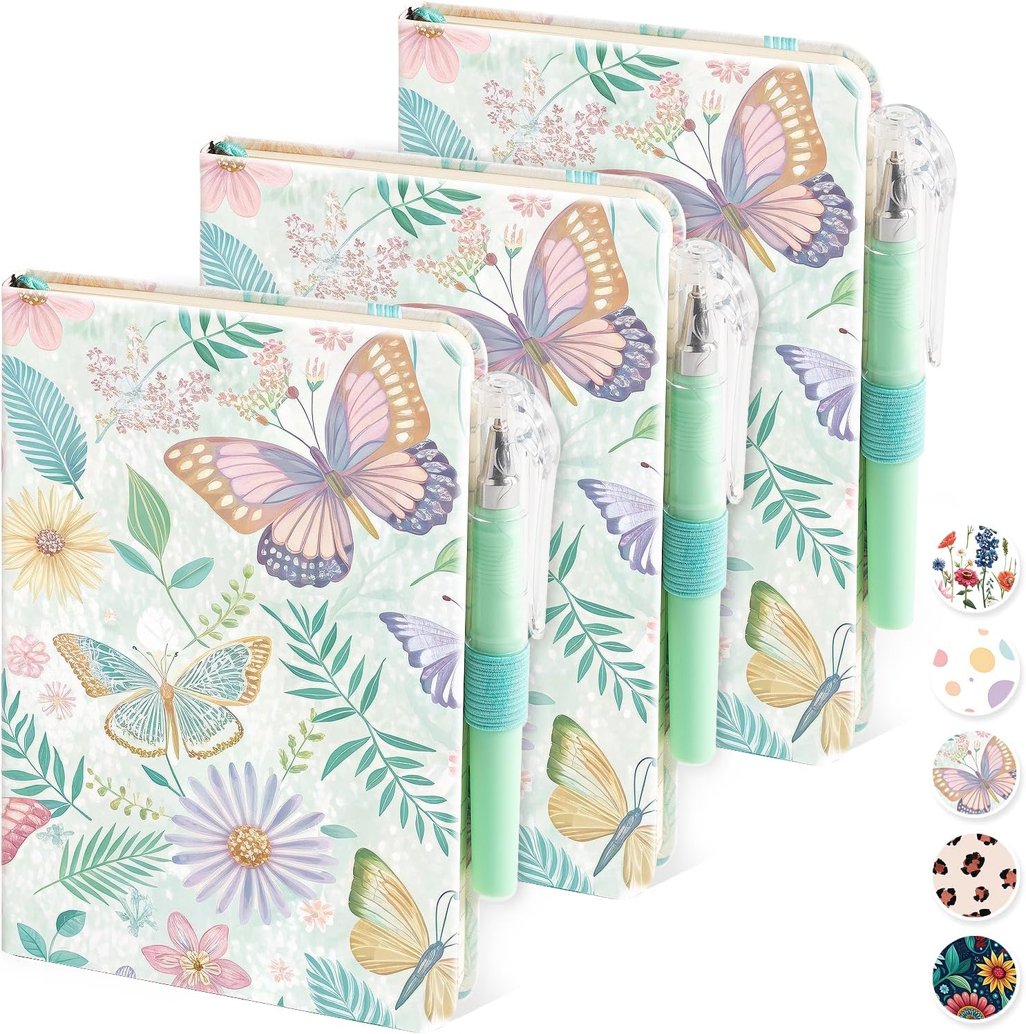 Aesthetic Small Journal Notebook, 3 Pack Mini Pocket Notebook with Pen, (Butterfly Garden) 3.7" x 5.7", 100GSM Lined Paper, Hardcover Small Notepad for Kids/Girls/Women Writing Note Taking