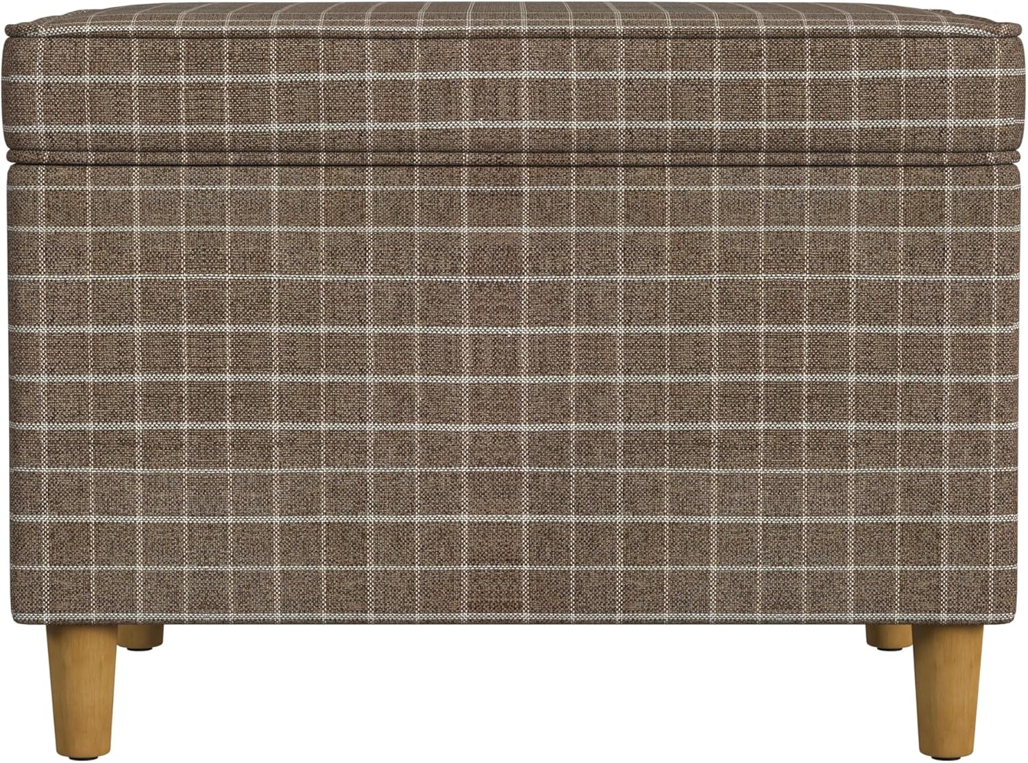 - Timeless & Functional Design β This Spatial Order Rectangular Storage Ottoman features a classic brown windowpane plaid fabric, paired with honey oak-finish wooden legs, bringing a warm and sophisticated look to any space.