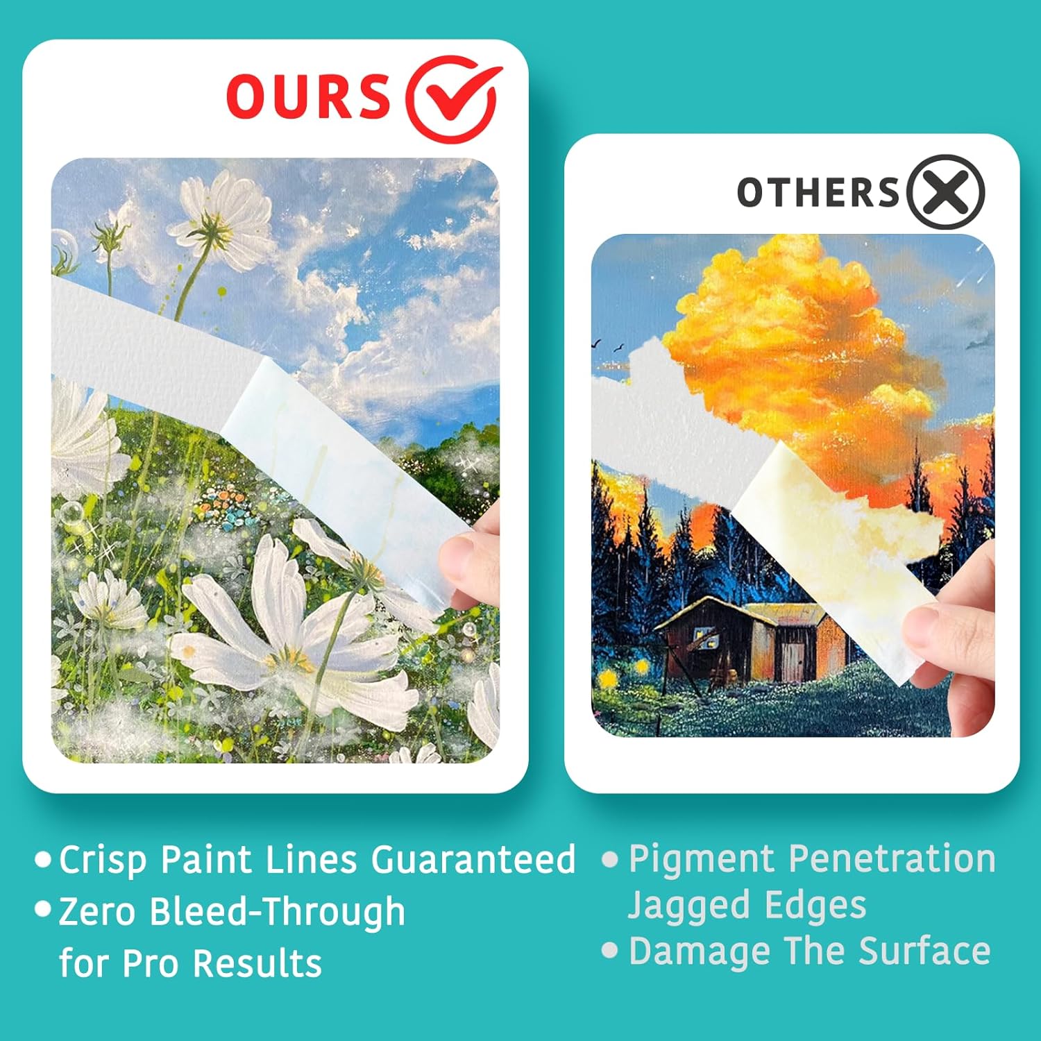 - ✅ No Residue & Easy Tear – Our painters tape white features specially formulated adhesive for clean removal (no sticky marks!) and effortless hand-tearing—no scissors needed