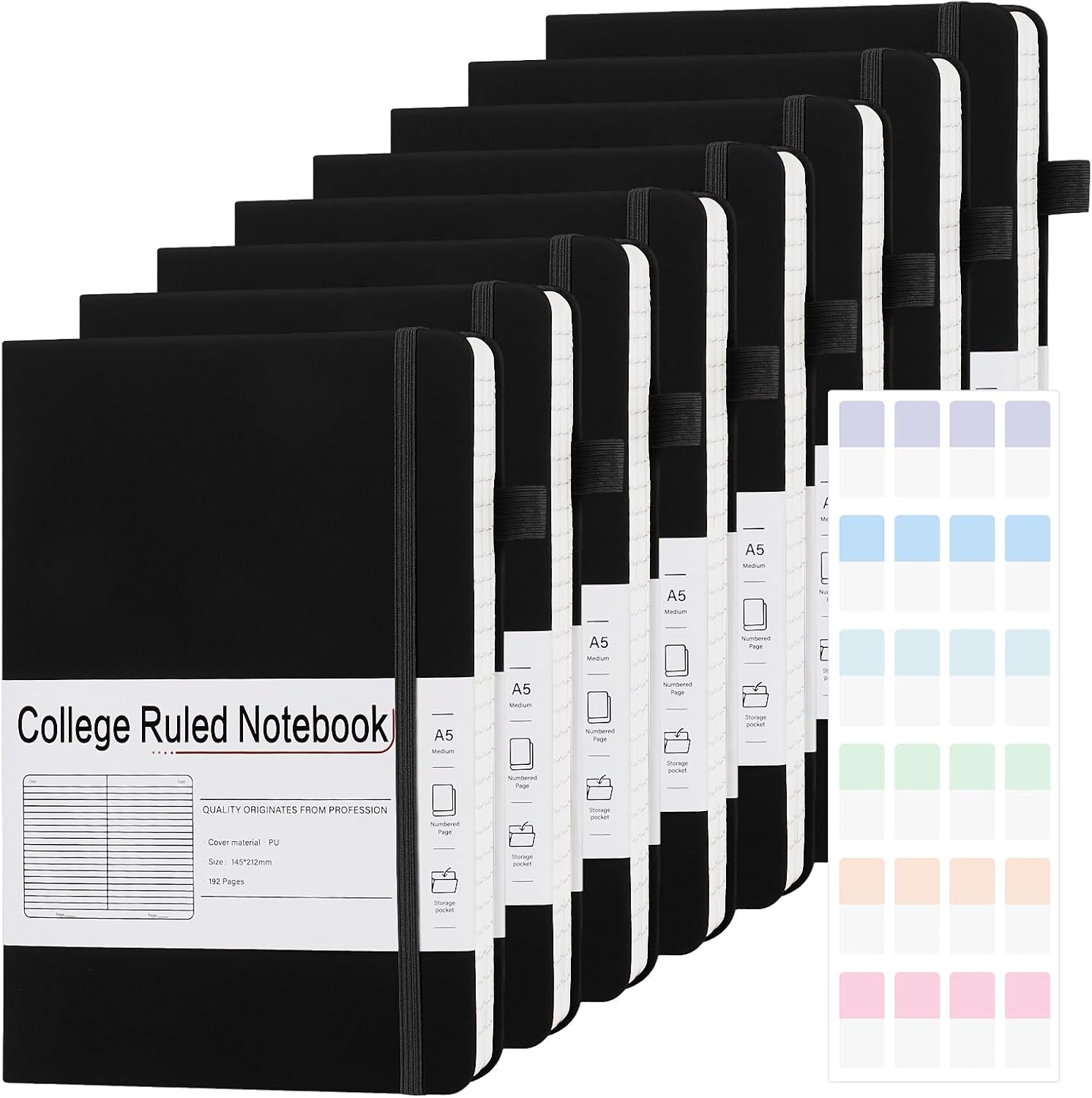 A5 Lined Journal Notebooks for Work, 192 Pages, Medium 5.7 x 8.3inch, College Ruled, Vegan Leather Hardcover Journals for Women Men,8 Pack