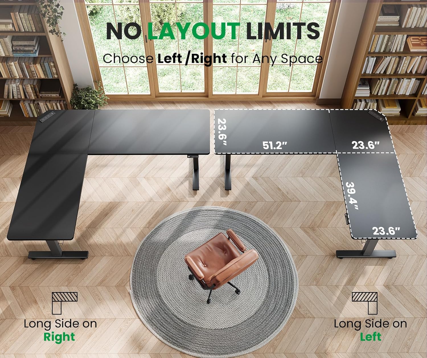- 【No Layout Limits】Effortlessly adapt to any room layout with your unique reversible installation feature. Choose between left/right long-side configurations to maximize space utilization, ensuring seamless integration into any home office setup. Tailored to your unique needs, SIAGO L-shaped desk offers ultimate flexibility while delivering a premium workspace solution.