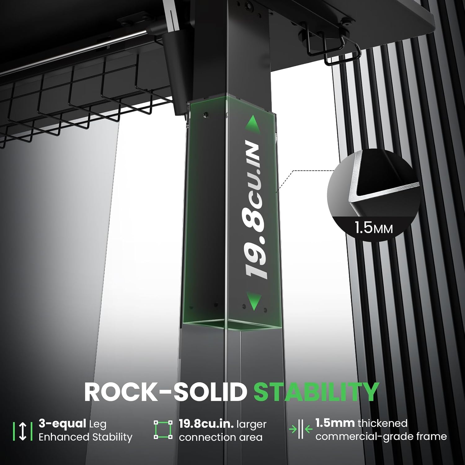 - 【Solid and Durable】The L-shaped electric standing desk features a durable and wear-resistant tabletop paired with three equal-length legs . During a 250LBs load-bearing test, the motor can smoothly perform 50,000 lifting and lowering cycles. SIAGO L-shaped standing desk — Redefining the lifecycle of office furniture through industrial-grade durability