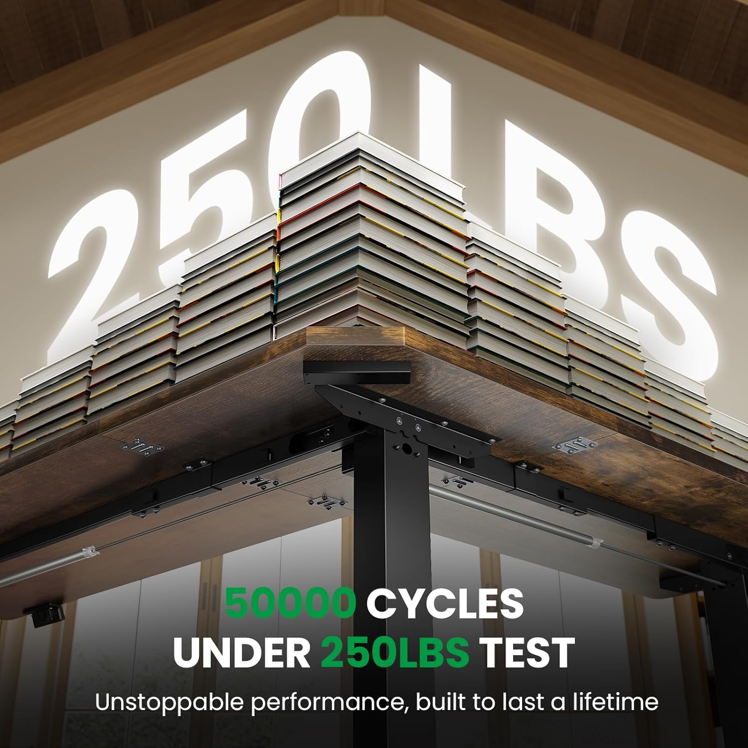 - 【Solid and Durable】The L-shaped electric standing desk features a durable and wear-resistant tabletop paired with three equal-length legs . During a 250LBs load-bearing test, the motor can smoothly perform 50,000 lifting and lowering cycles. SIAGO L-shaped standing desk — Redefining the lifecycle of office furniture through industrial-grade durability