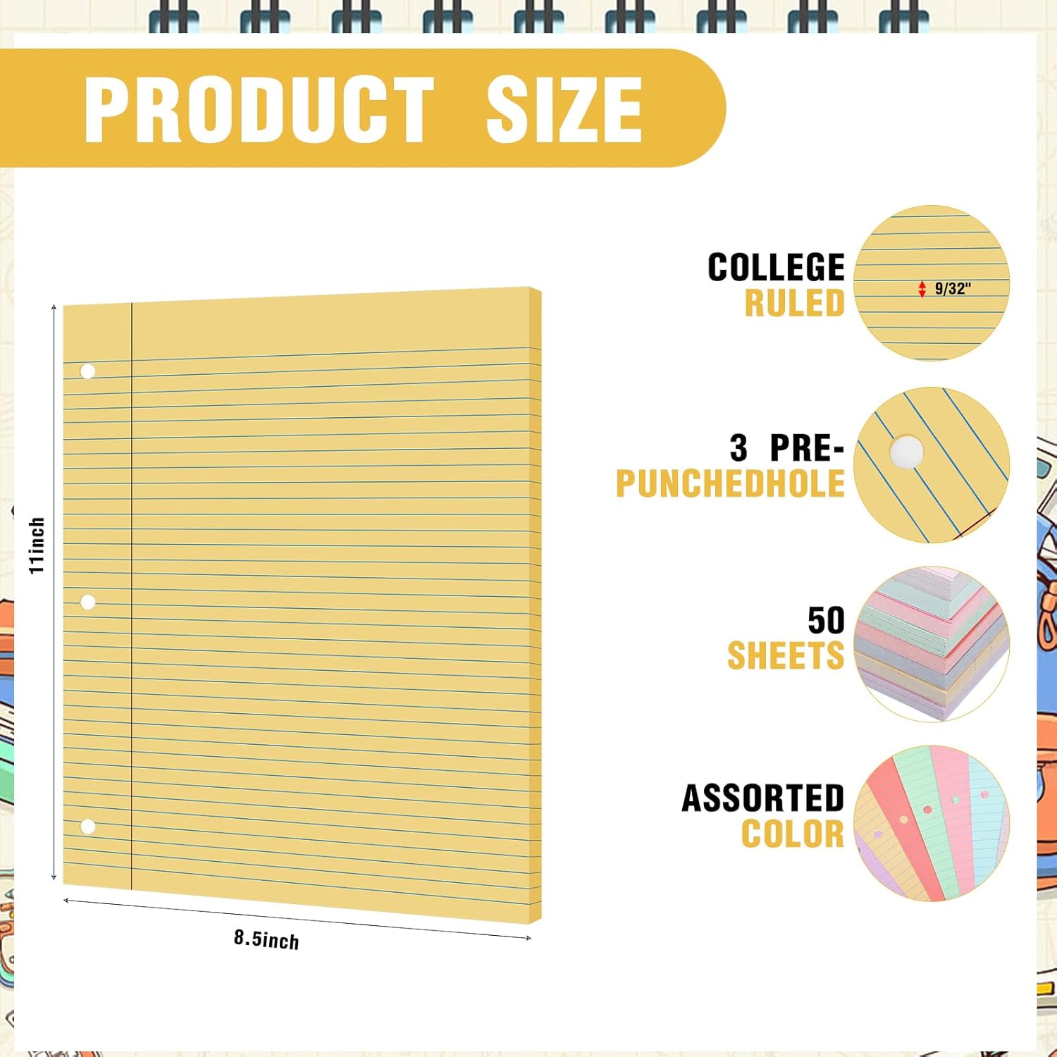 PerKoop 400 Sheets Colored Loose Leaf Paper 8.5" x 11" college ruled Lined 3 Hole Punched notebook Filler Paper for 3 Ring Binders Office School Supplies (Candy Colors)