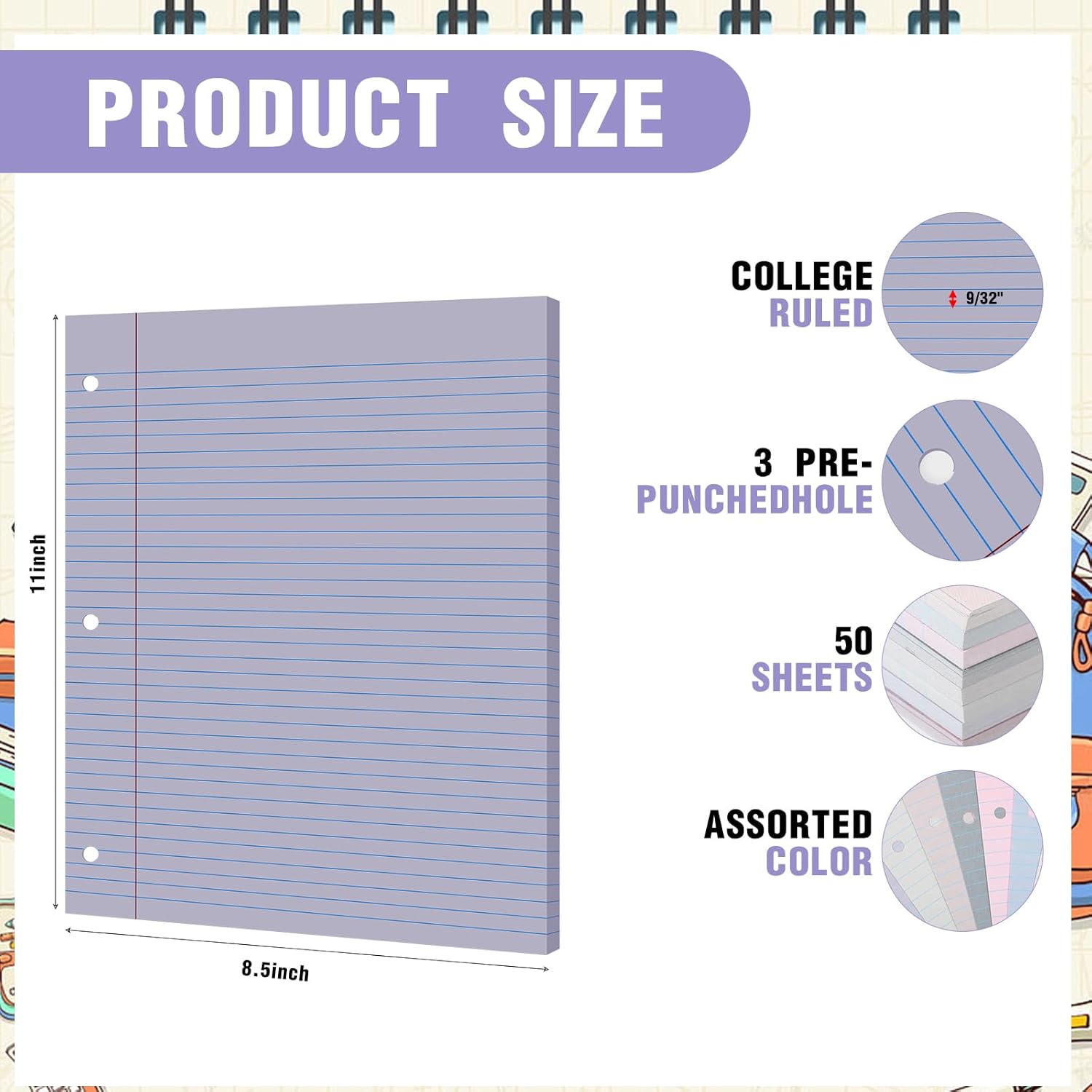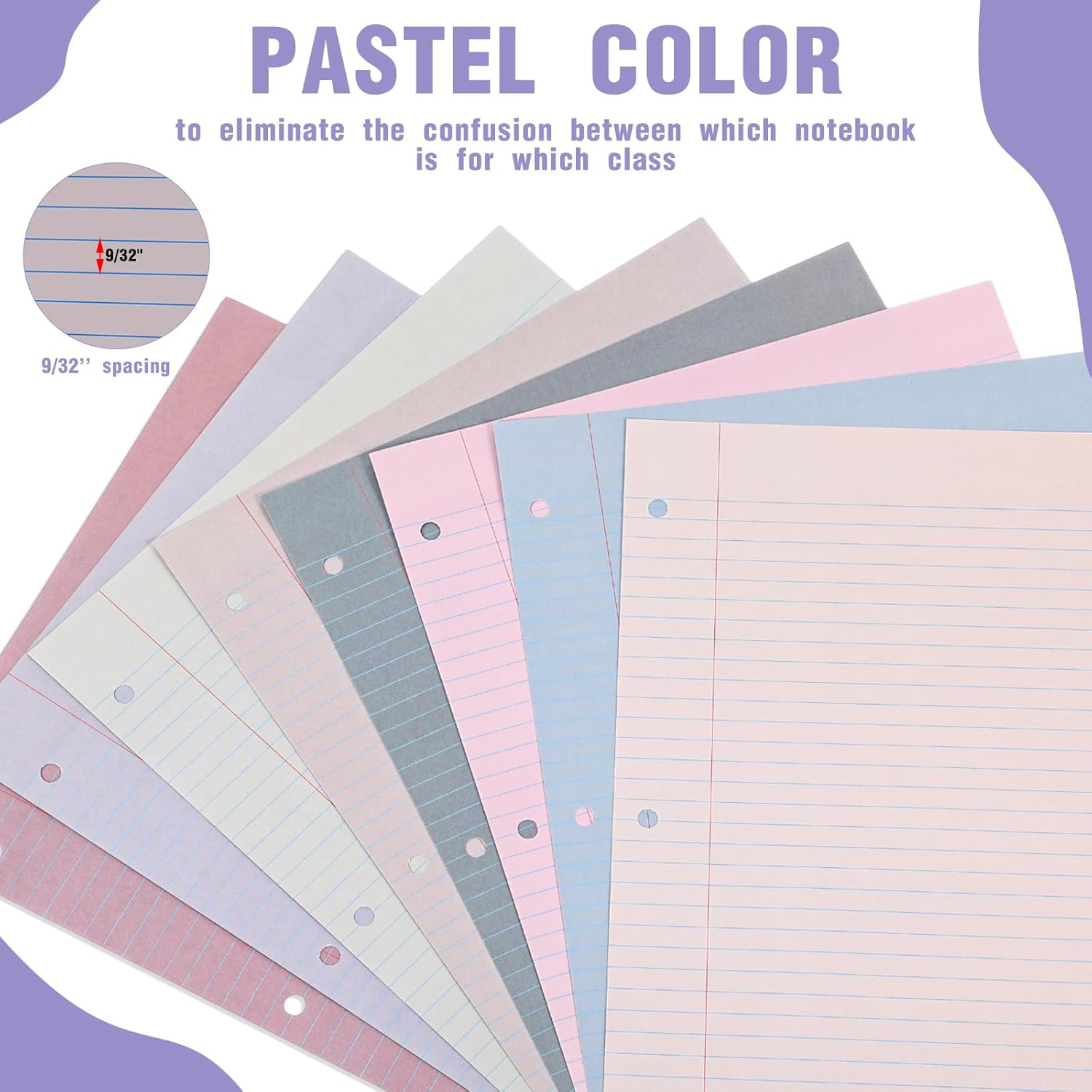 PerKoop 400 Sheets Colored Loose Leaf Paper 8.5" x 11" college ruled Lined 3 Hole Punched notebook Filler Paper for 3 Ring Binders Office School Supplies (Sweet Color)