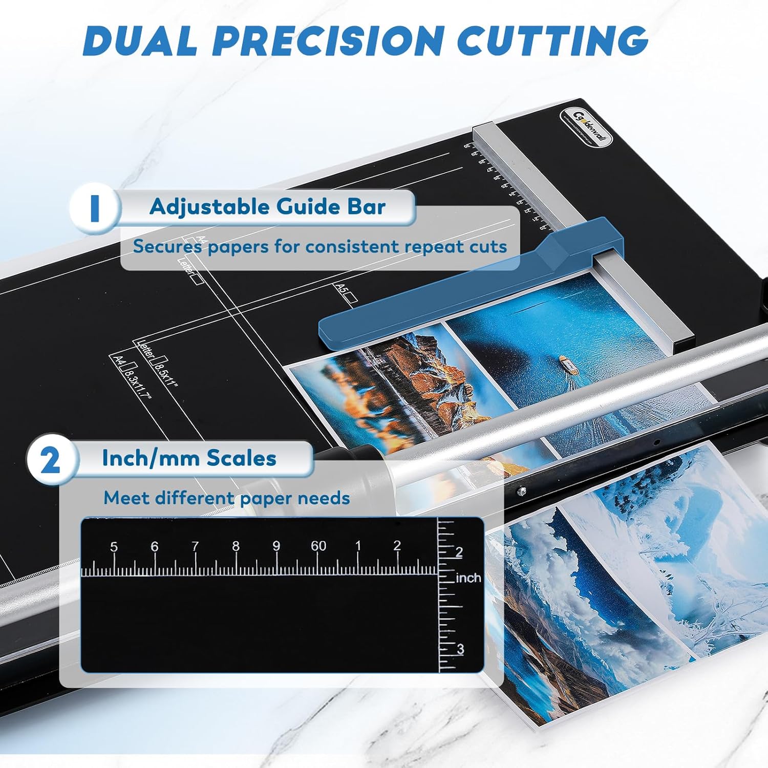- DUAL PRECISION CUTTING: Laser-etched dual-scale (inch/mm) grid base + adjustable paper guide ensure perfect alignment for repeatable cuts—ideal for crafting multi-page documents, scrapbooking, or framing prints.