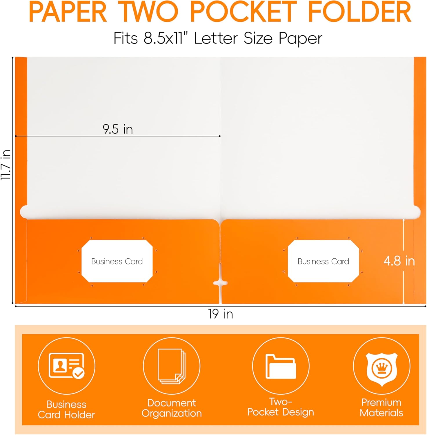 50 Pack Folders with Pockets, Pocket Folders Fit Letter Size Paper, with Business Card Slot, 2-Pocket Folder for School Office Home Business