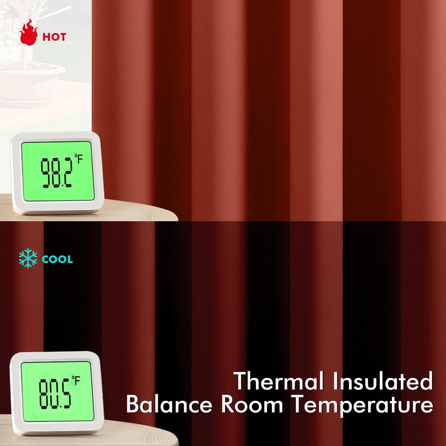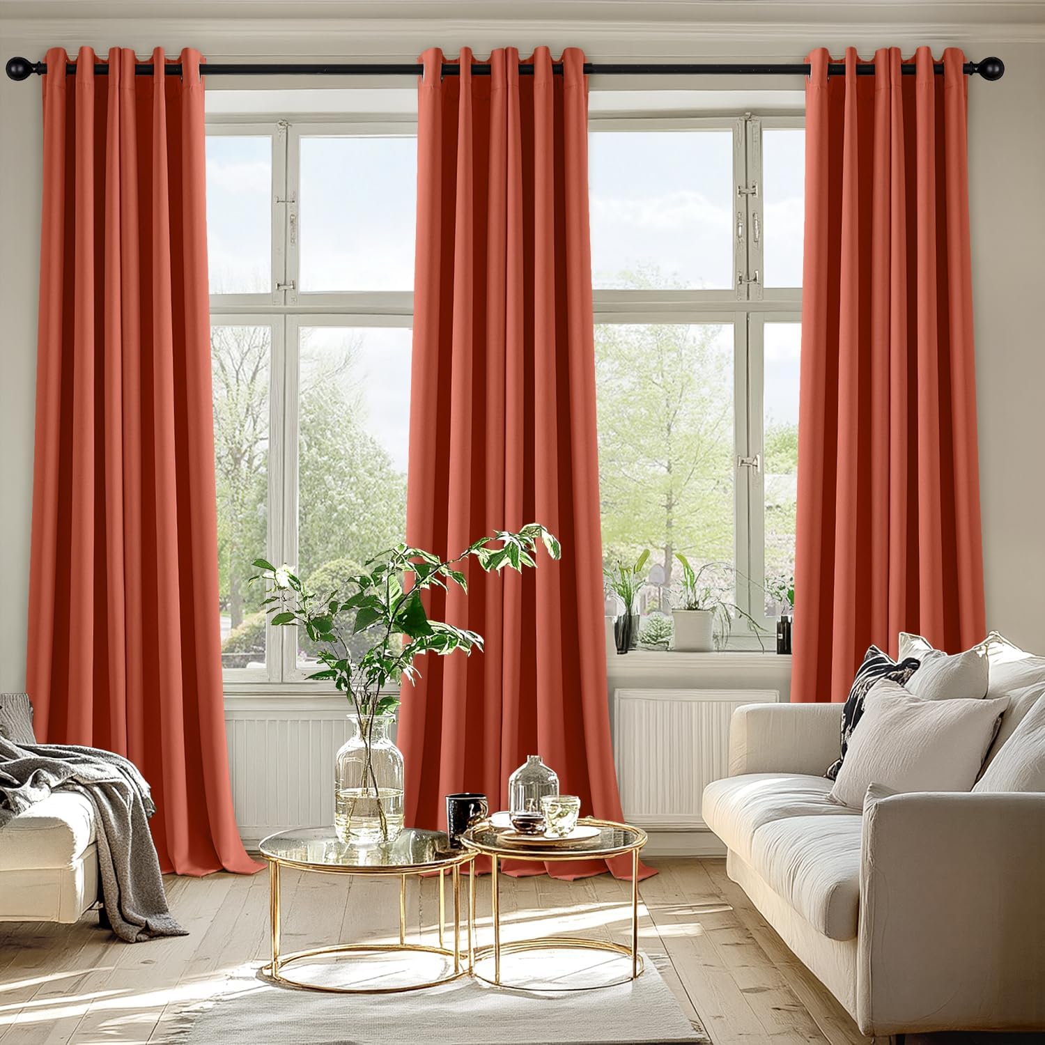 MIULEE Burnt Orange Blackout Curtains for Bedroom Living Room 90 Inches Long 2 Panels, Thermal Insulated Room Darkening Drapes Solid Grommet Top Noise Reduction Terracotta Rust Fall Window Treatments