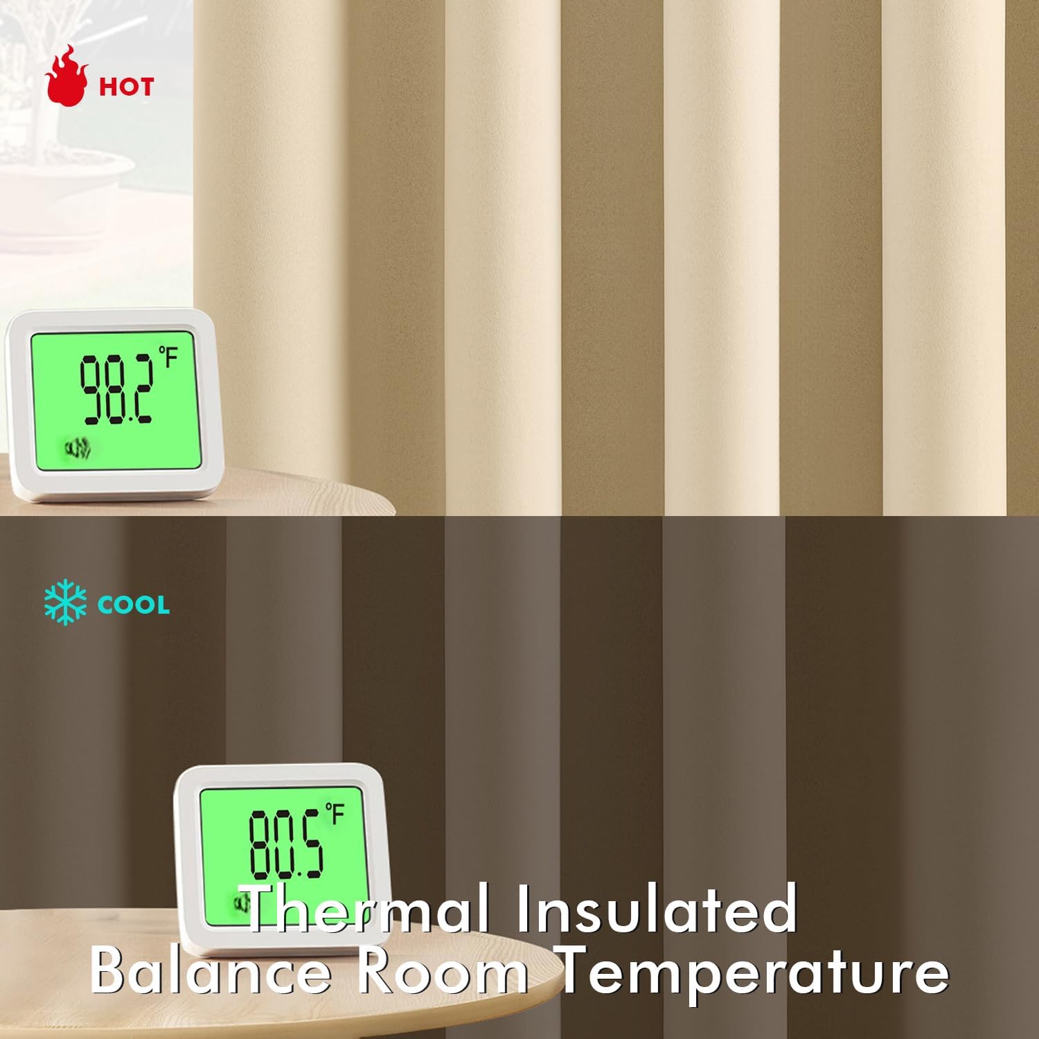 - High-Quality Material: Crafted from high-quality 225GSM polyester fabric, these curtains offer enhanced durability and elegant drape. The soft blackout material features triple-layer weaving technology, with a middle layer of black yarn for superior light blocking and privacy. Both sides feature the same refined color, ensuring a seamless look that elevates your homeβs aesthetic with understated sophistication
