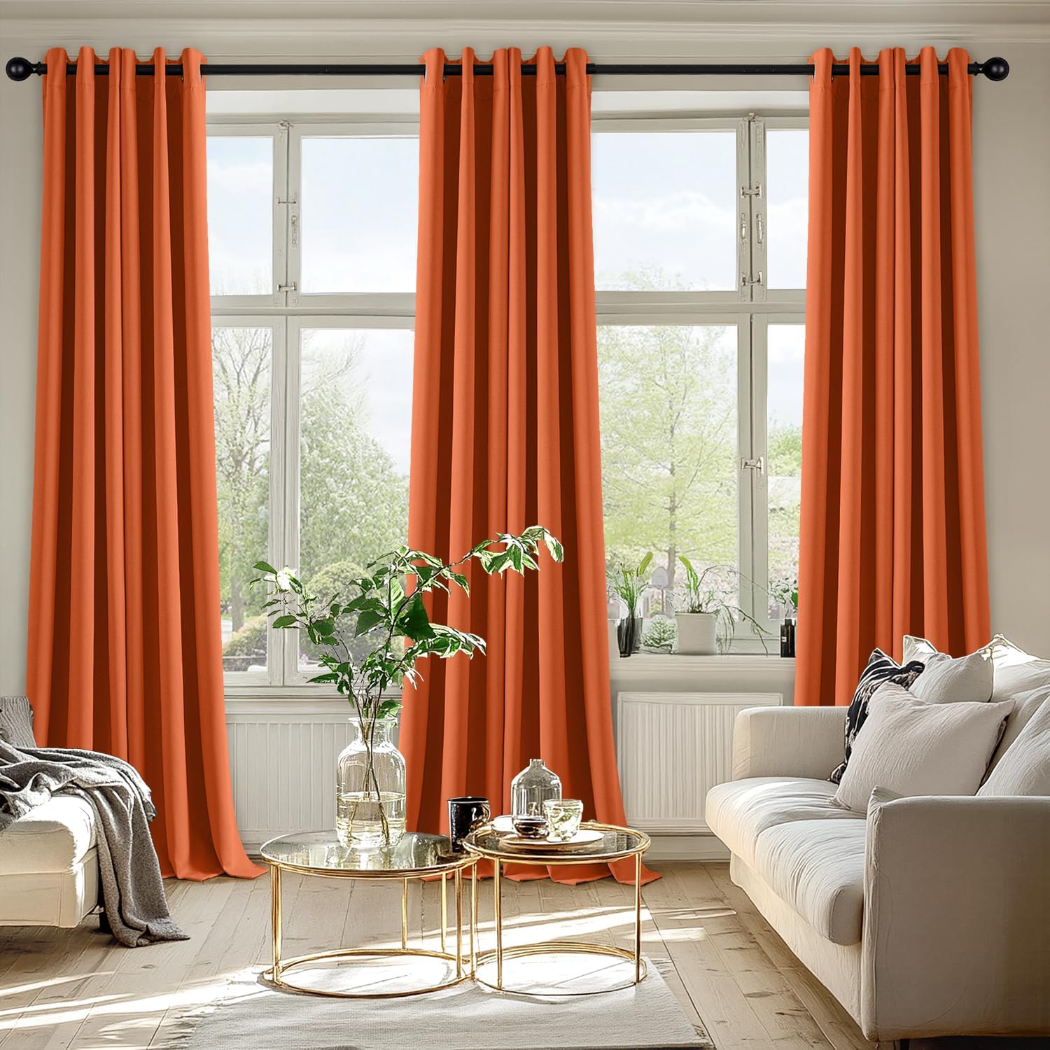 MIULEE Orange Blackout Curtains for Bedroom Living Room 90 Inches Long 2 Panels, Thermal Insulated Room Darkening Fall Drapes Solid Grommet Noise Reduction Light Blocking Window Treatments 40x90 Inch