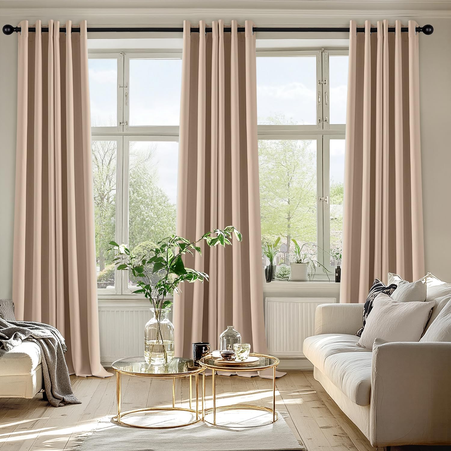 - High-Quality Material: Crafted from high-quality 225GSM polyester fabric, these curtains offer enhanced durability and elegant drape. The soft blackout material features triple-layer weaving technology, with a middle layer of black yarn for superior light blocking and privacy. Both sides feature the same refined color, ensuring a seamless look that elevates your homeβs aesthetic with understated sophistication