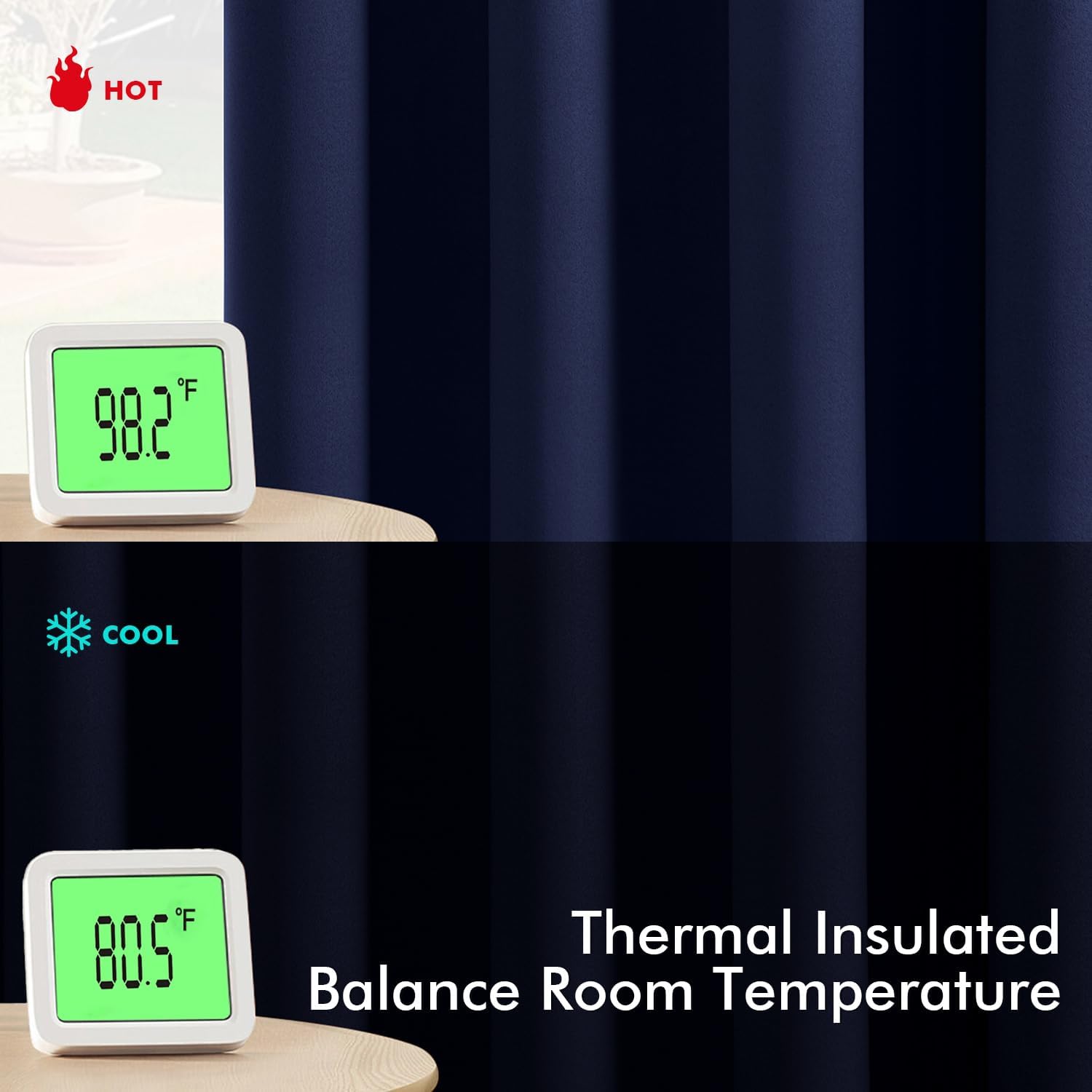 - Energy Saving: The thermal-insulated fabric keeps heat out in summer and retains warmth in winter, reducing your reliance on AC/heating and lowering energy costs by up to 15%. They are perfect for living rooms, bedrooms, patios, villas and offices