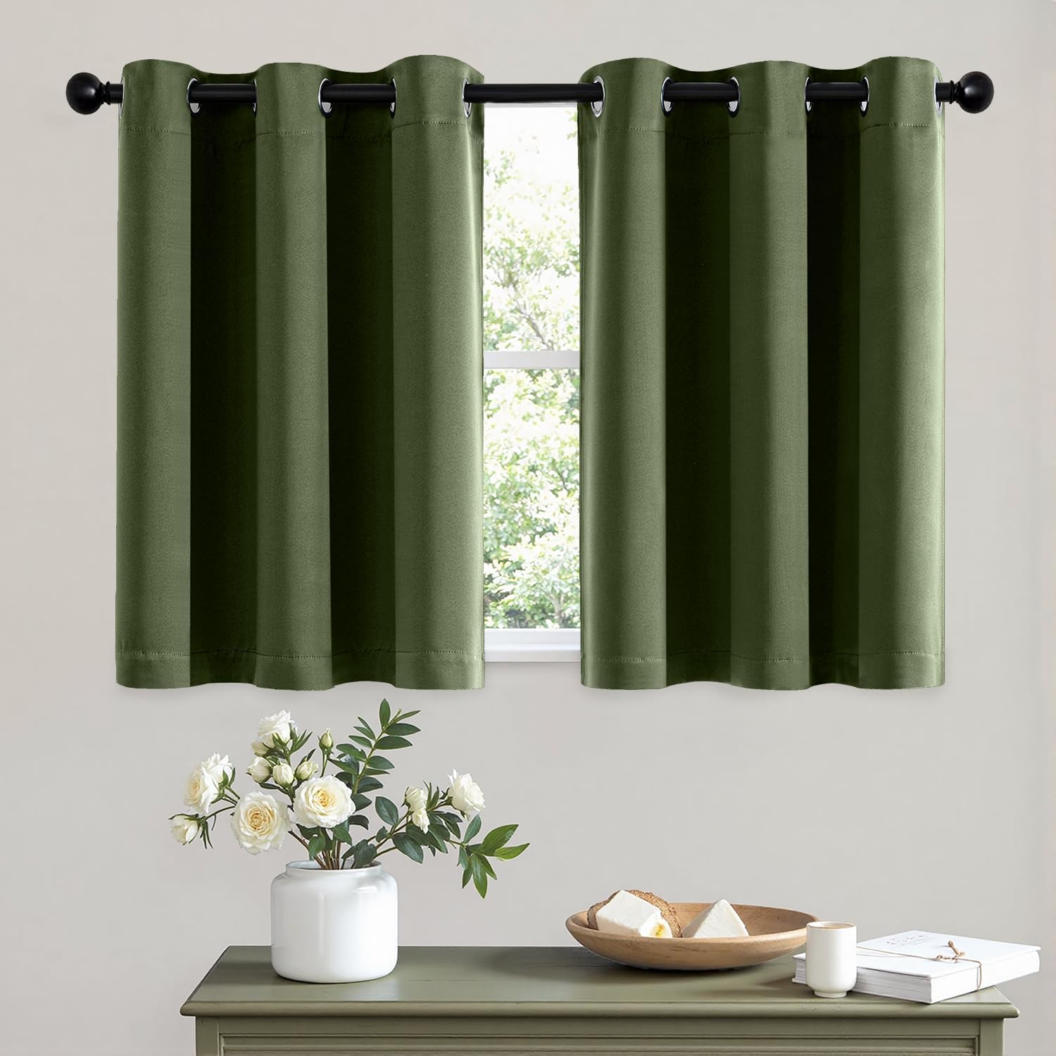 MIULEE Short Curtains for Windows - Olive Green Blackout Half Window Curtains Thermal Insulated Privacy Drapes for Kitchen Bedroom Bathroom Grommet Top Small Basement Tiers W40 x L36 Inch 2 Panels