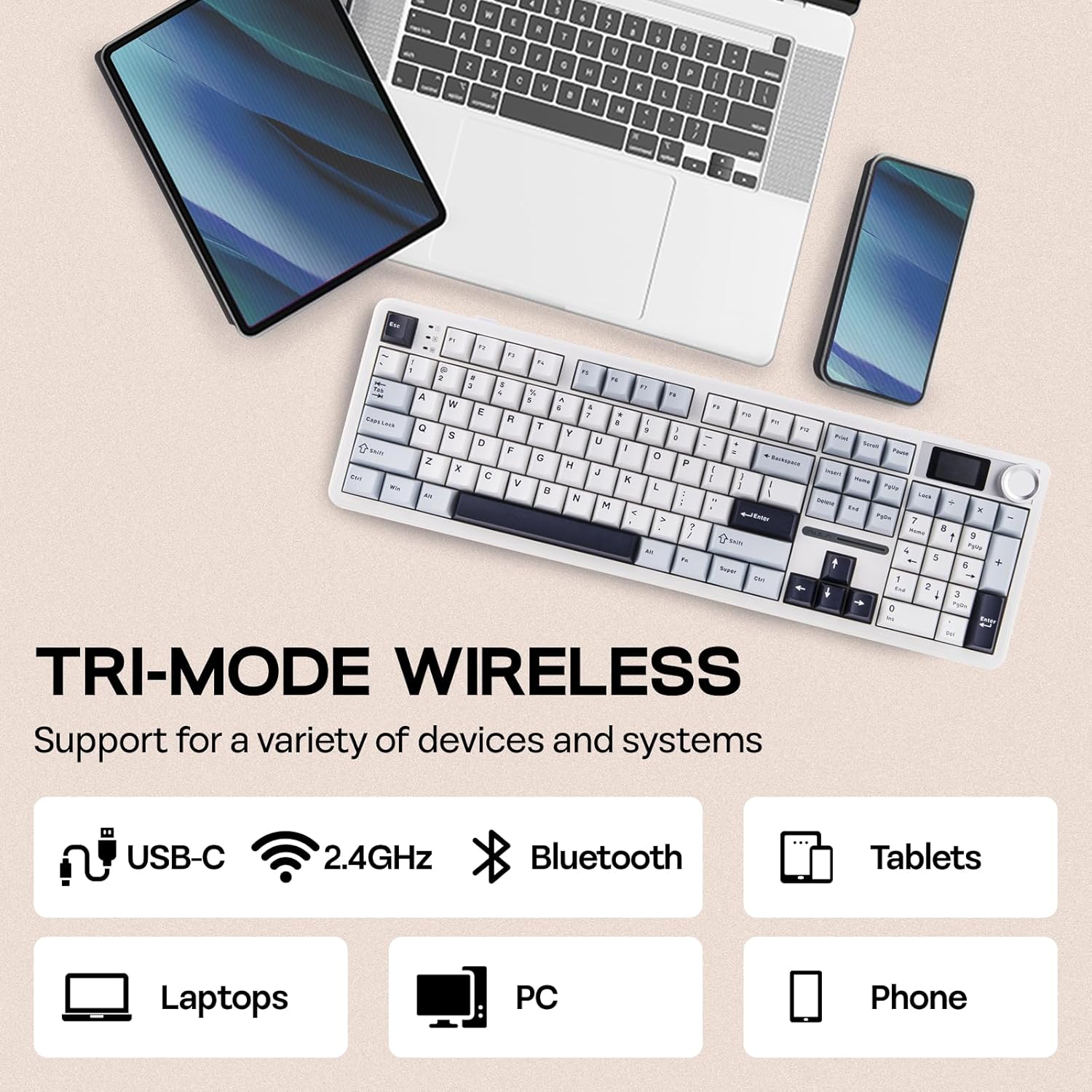 EPOMAKER X Aula F108 PRO Wireless Gaming Keyboard with Screen, 8000mAh Battery, 104 Hot-Swappable and Programmable Keys and Knob, RGB Backlight, for Mac/PC/Android (Blue&White)