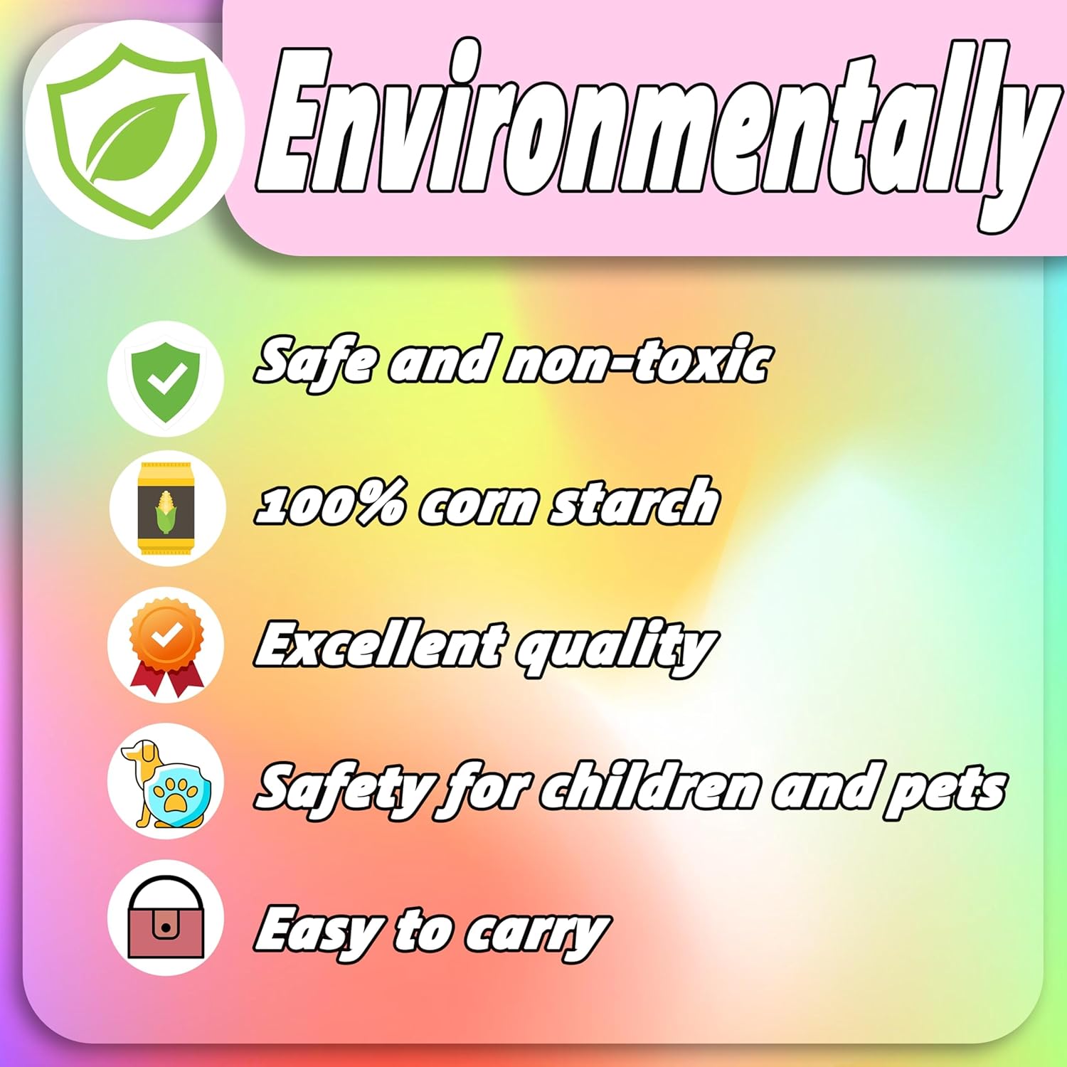 - Safe & Harmless - Made of edible corn starch, safe for skin and hair. If it accidentally gets into your eyes, please rinse with water.