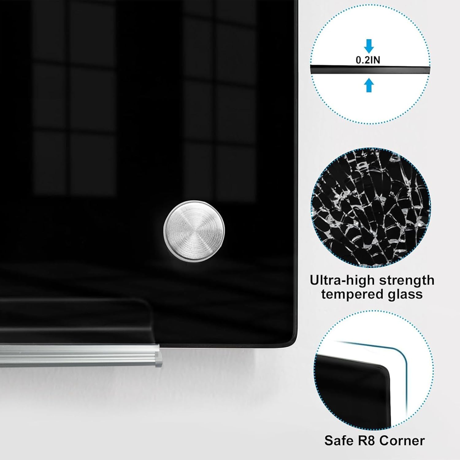 - MAGNETIC BOARDS: This 6' x 3' black magnetic board is perfect for meetings, lessons and presentations. Display important documents, schedule, calender for daily life. This black glass dry erase board is a great gift for your workmates, boss or kids, as well as a home or office decoration