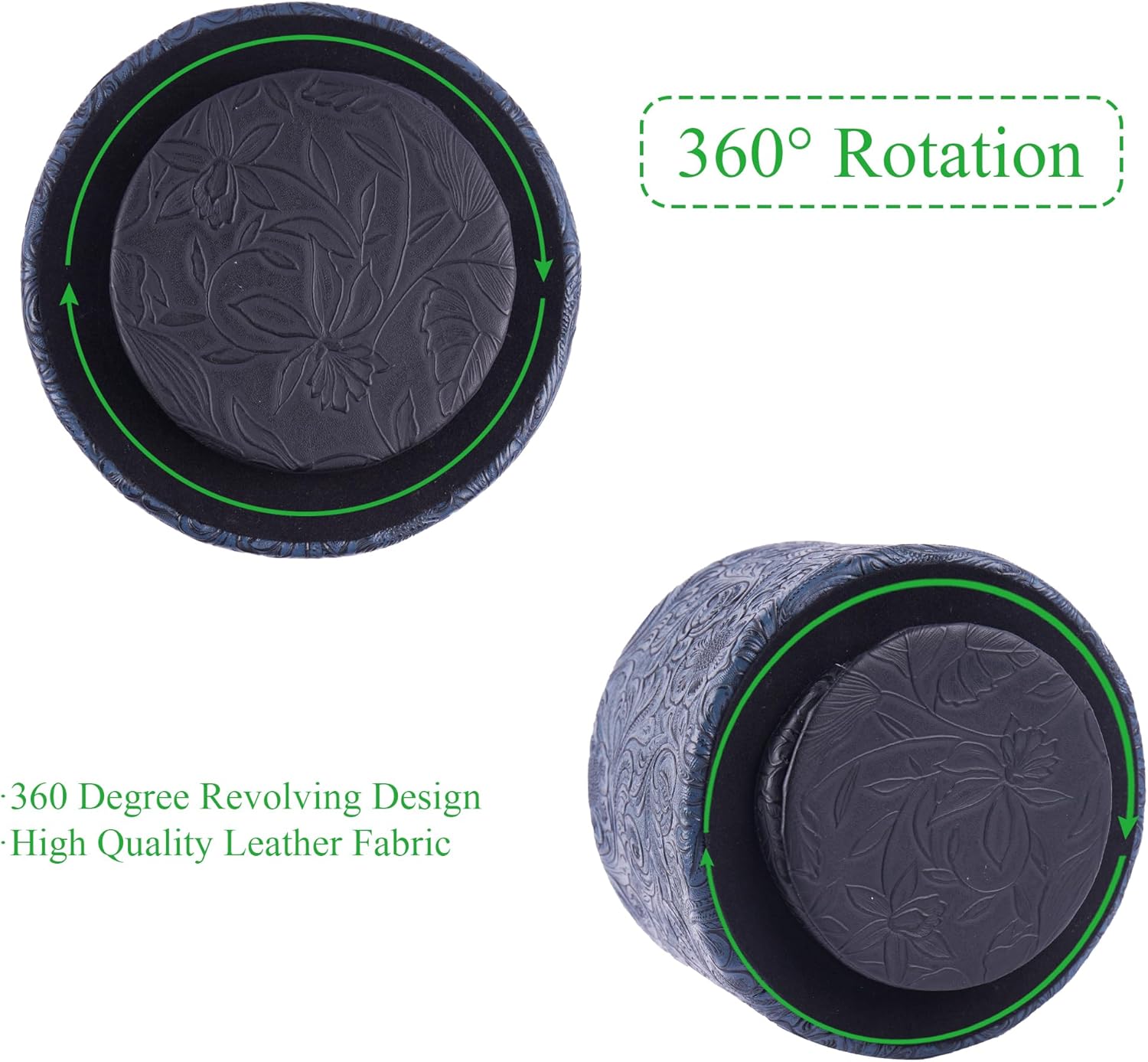 lizimandu Round Leather Art Supply Organizer,Remote Control Holder,360 Degree Spinning,Multi-Functional Pencil Holder,4 Compartments Desktop Stationary Organizer(1-Carved Dark Blue)