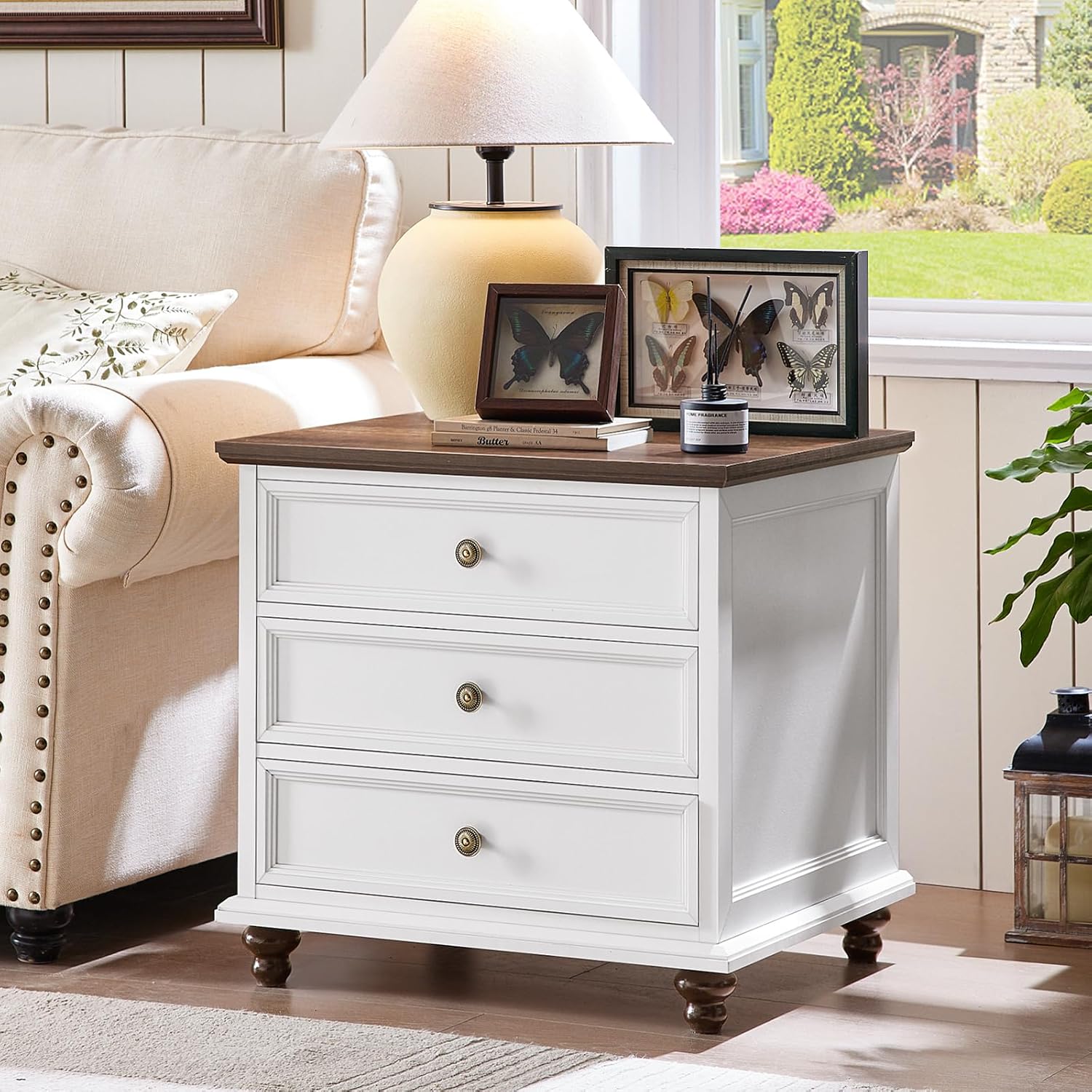 - [Versatile Usage Options]The farmhouse style and spacious large-size design of the 3 drawer nightstand makes it suitable as an end table or a bedroom night stand.Size:19.76"D x 24"W x 22.91"H.