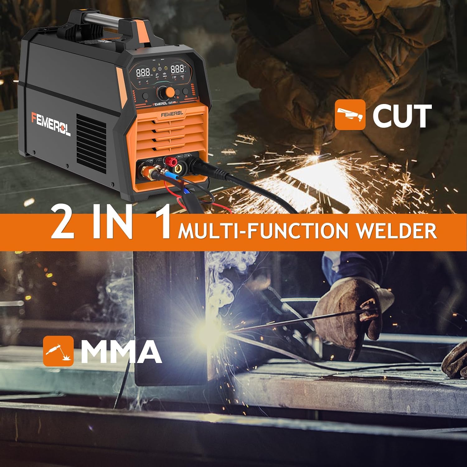 - 2 IN 1 Multi PLASMA CUTTER: 60A Plasma Cutter & 200A MMA Welder, There are two modes:plasma cutting/ MMA welding,meeting your different requirements.This plasma cutter is ideal for use on materials including stainless steel, alloy steel, mild steel, copper, aluminum, etc.