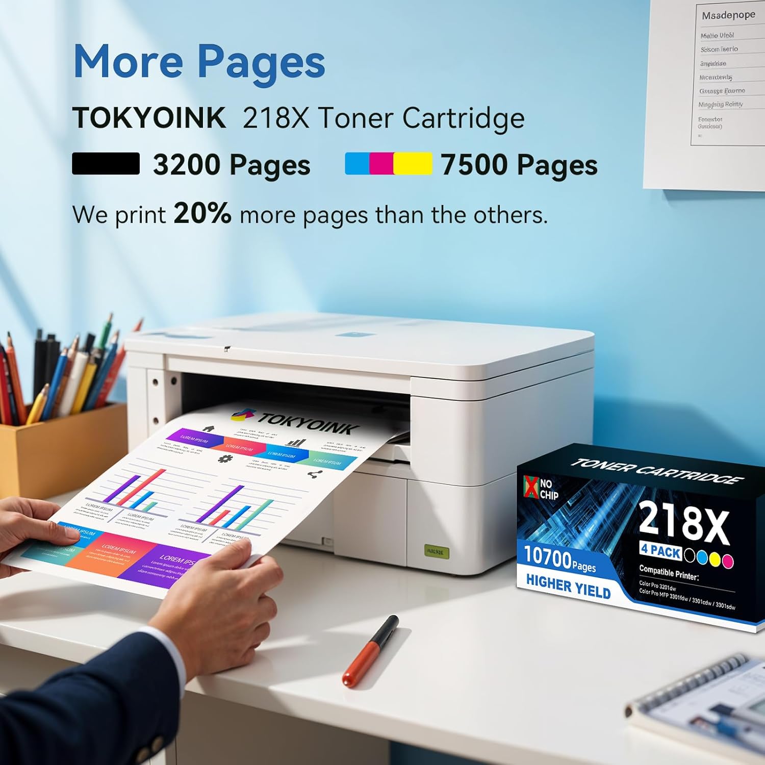 - Warm Tip: TOKYOINK 218X High Yield compatible toner cartridge 4 Pack do NOT come with chip, please remove the OEM 218X or 218A CHIP and install it into our new 218X High Yield toner cartridge