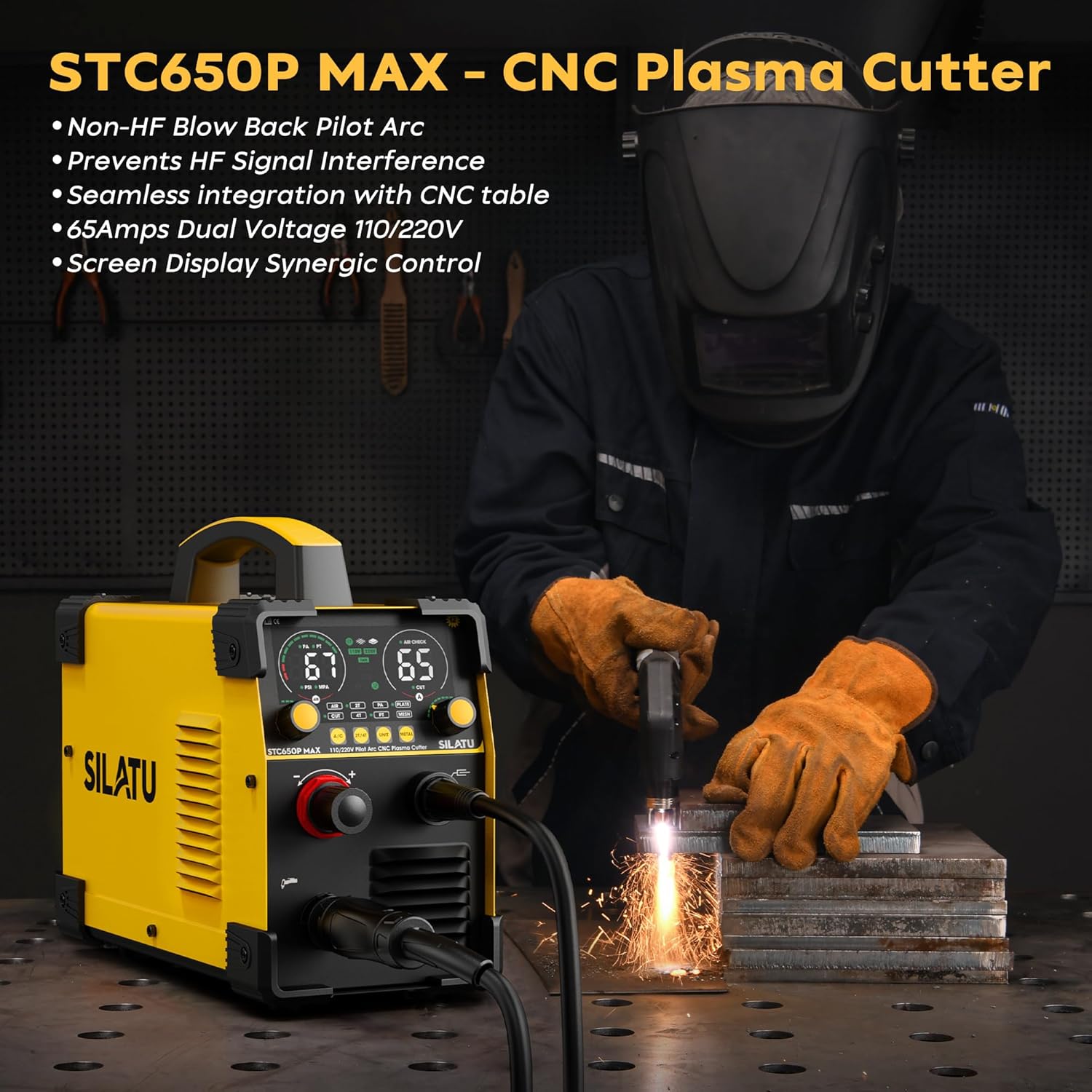 SILATU CNC Plasma Cutter Machine, 65Amp Blow Back Pilot Arc Air Sensor Technology, Large Screen Display, 110V/220V Dual Voltage Non-Touch CNC Plasma Cutting Machine, 16mm Clean Cutting Thickness