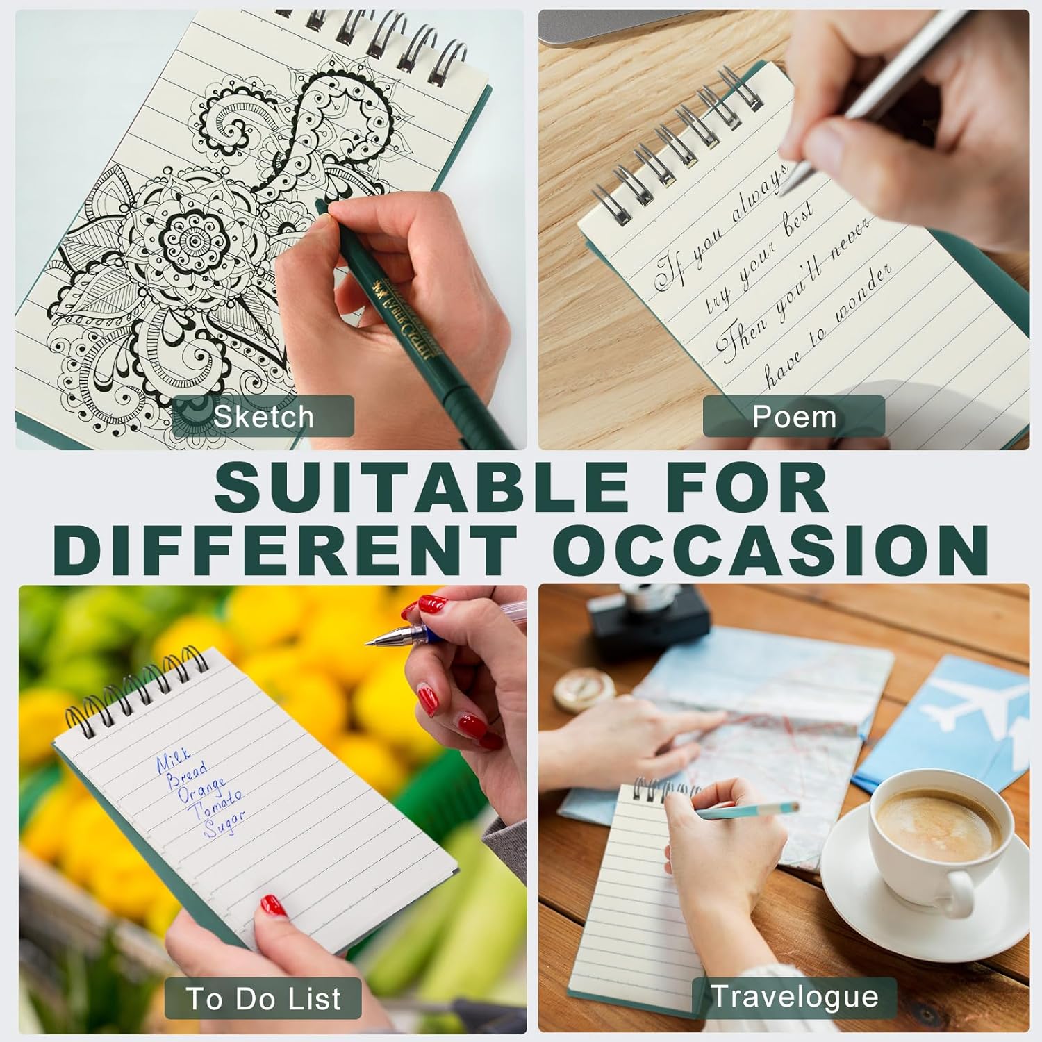 - Wide Usage: the mini spiral notepad is ideal for journaling, note taking, poetry writing, sketching and painting, work notes, study notes, mood journals and more; It can be applied in home, office, school, college, business, conference, universities, remote meetings, and more; These mini notebooks make a practical gifts for travelers, neighbors, friends, business colleagues, teachers, or family