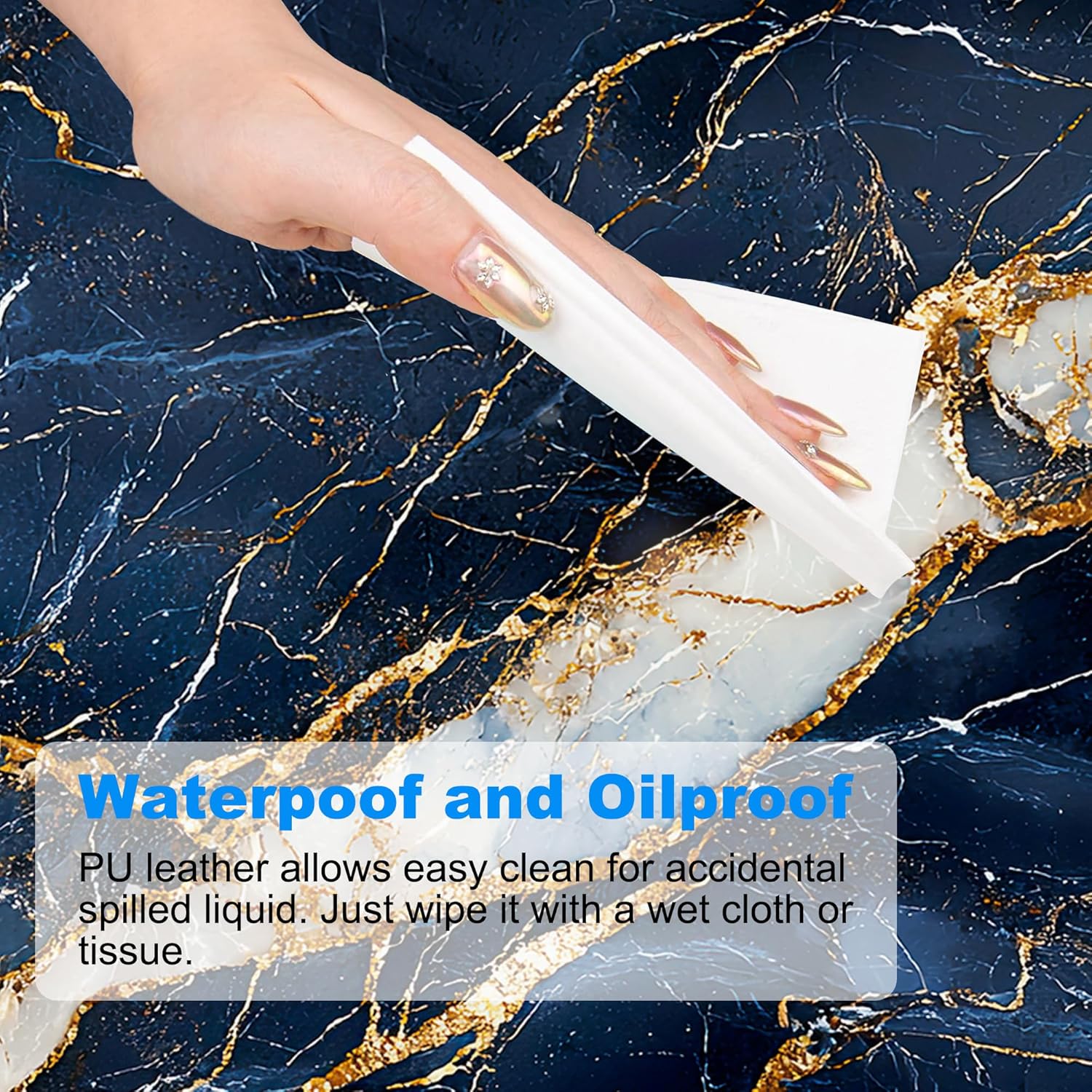 Desk Mat, Navy Blue and White Marble Texture Large Gaming Mouse Pad with Non-Slip Base Stitched Edges,Desk pad for Keyboard and Mouse Home Office 35.4"x15.7"