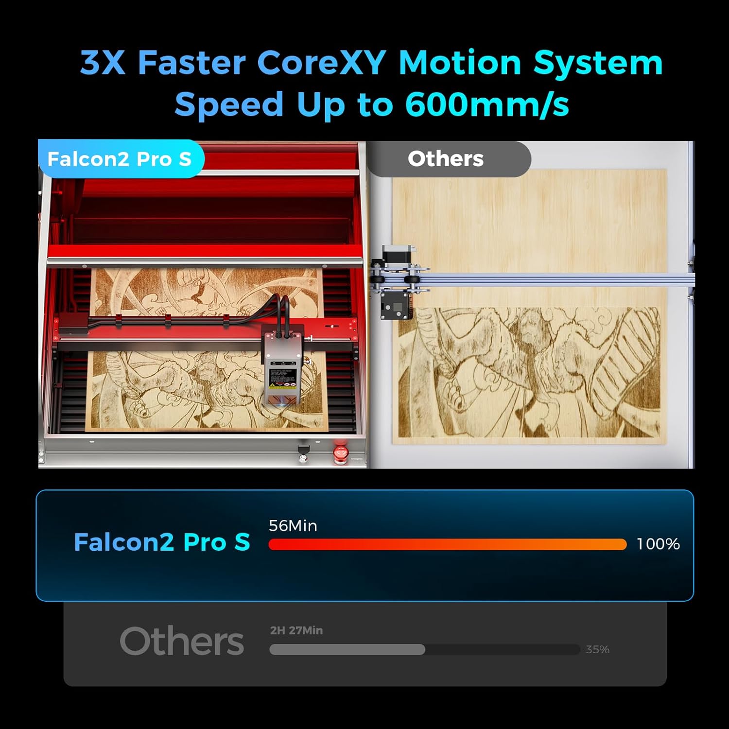 - Competitive Performance:The Falcon 2 Pro S 40W laser machine can effortlessly cut through 20mm wood and 20mm dark opaque acrylic in a single pass, saving you up to 50% of time compared to other laser machines. With a cutting speed exceeding 600mm/s and laser focusing down to 0.06*0.08mm for fine details, this machine offers precise engraving and cutting for a variety of materials, making it ideal for small businesses seeking high performance.