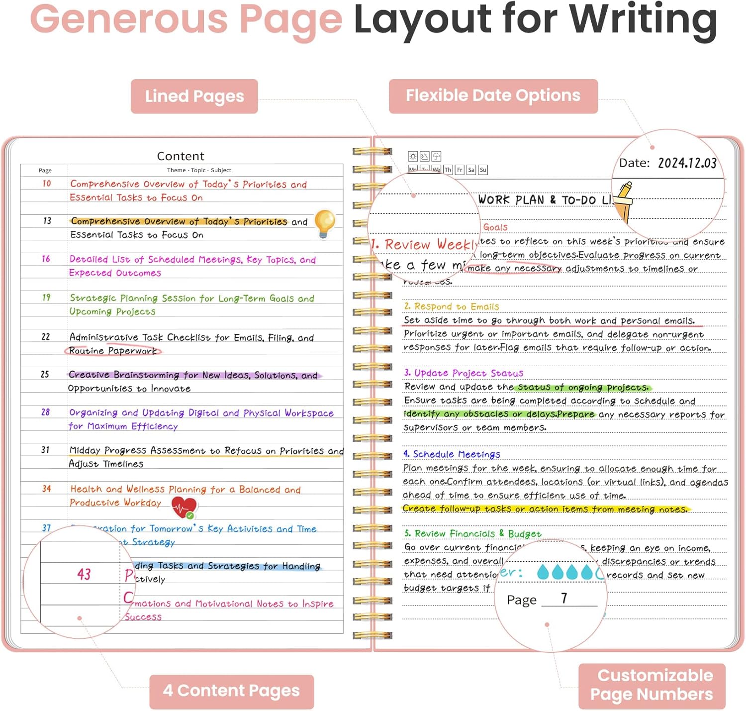 - Large A4 Spiral Notebook: Measuring 8.5" x 11" with standard 7mm college-ruled lines, this large A4 notebook offers ample space for detailed note-taking, journaling, and task management. Its spacious pages are perfect for capturing ideas, organizing thoughts, and managing projects—whether at work, school, or in your home office.