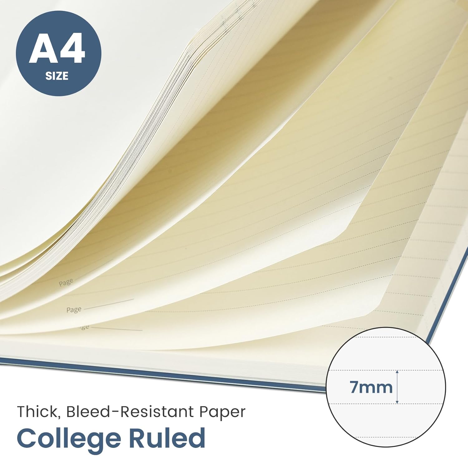 - Large A4 Spiral Notebook: Measuring 8.5" x 11" with standard 7mm college-ruled lines, this large A4 notebook offers ample space for detailed note-taking, journaling, and task management. Its spacious pages are perfect for capturing ideas, organizing thoughts, and managing projects—whether at work, school, or in your home office.