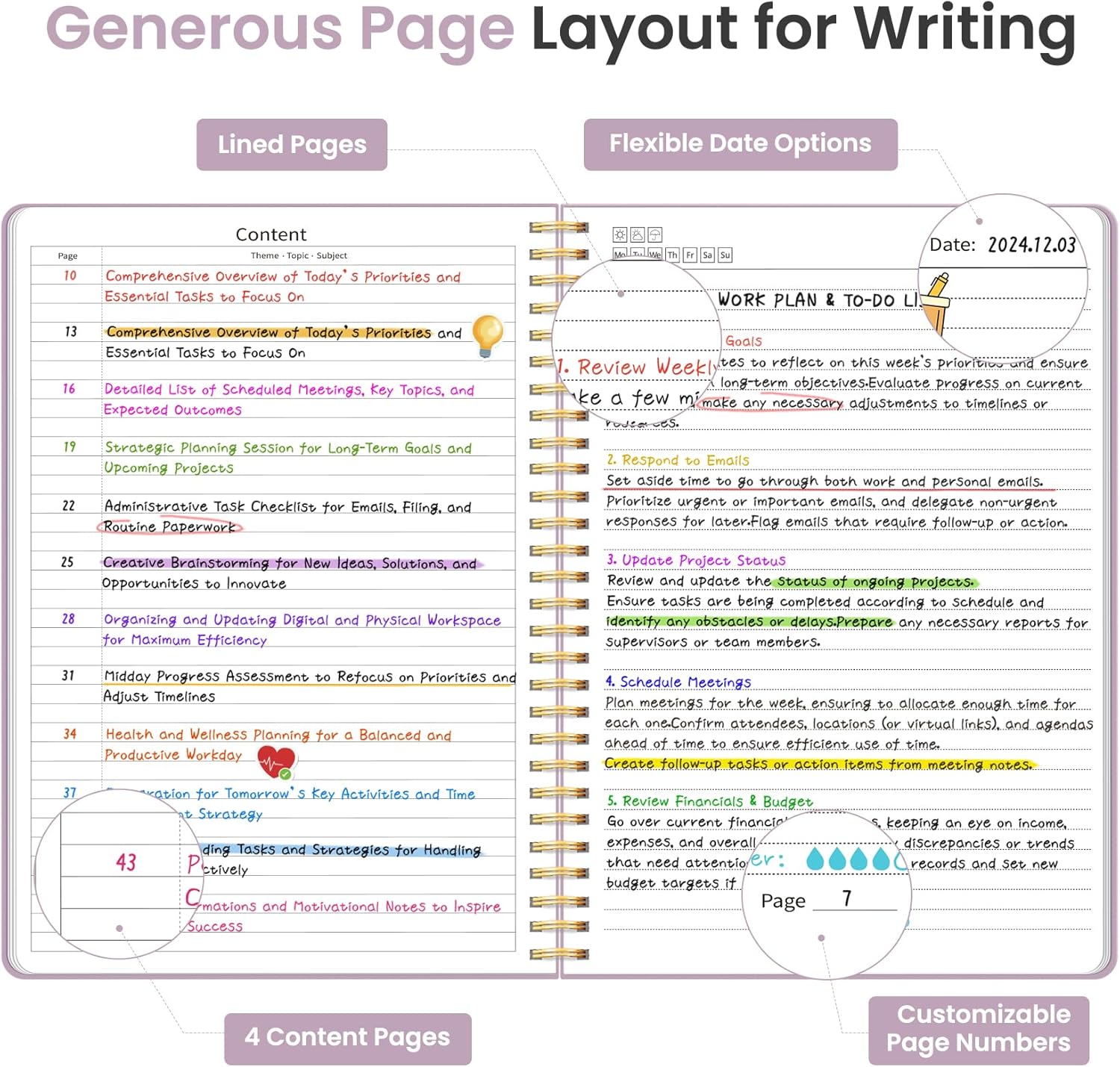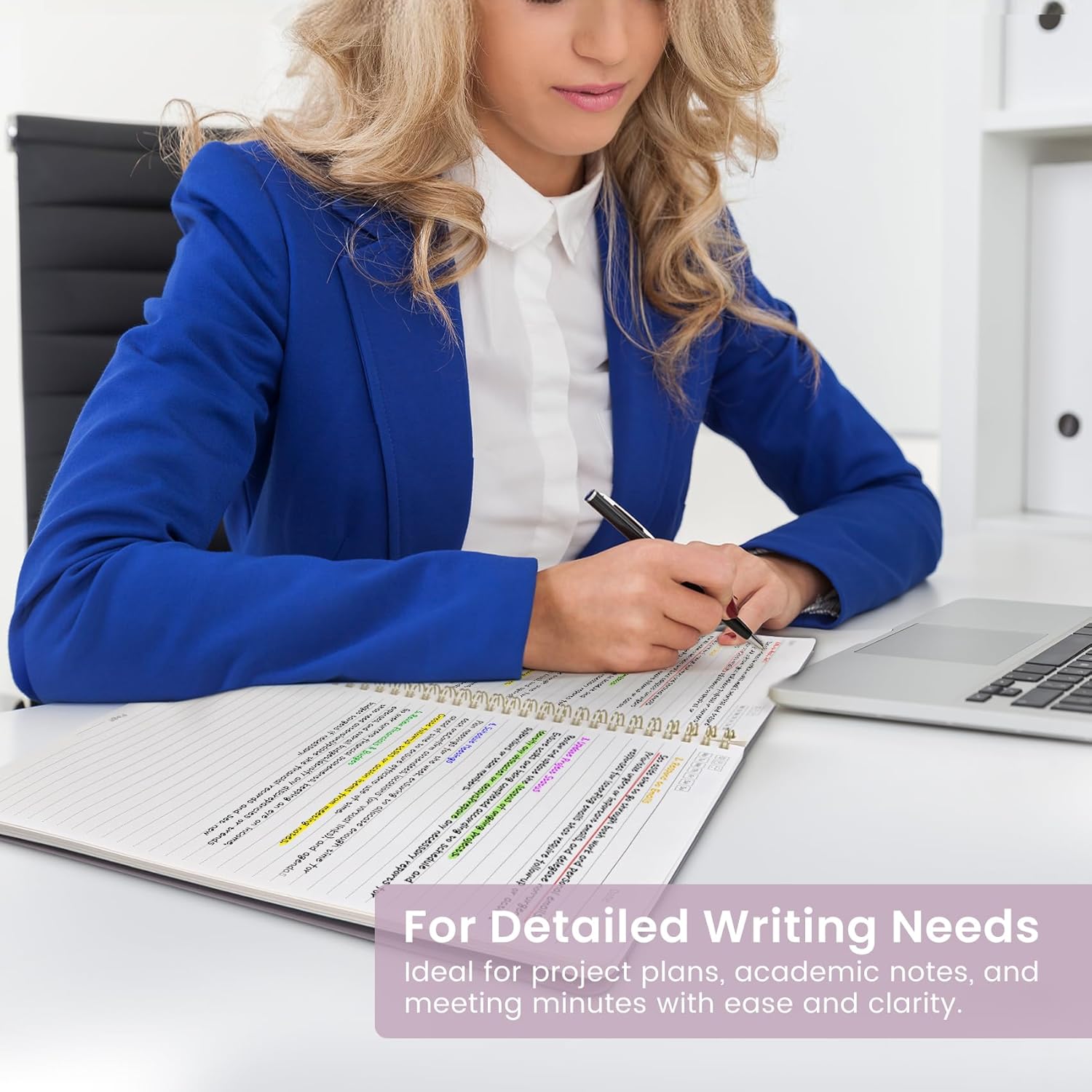 - Large A4 Spiral Notebook: Measuring 8.5" x 11" with standard 7mm college-ruled lines, this large A4 notebook offers ample space for detailed note-taking, journaling, and task management. Its spacious pages are perfect for capturing ideas, organizing thoughts, and managing projects—whether at work, school, or in your home office.