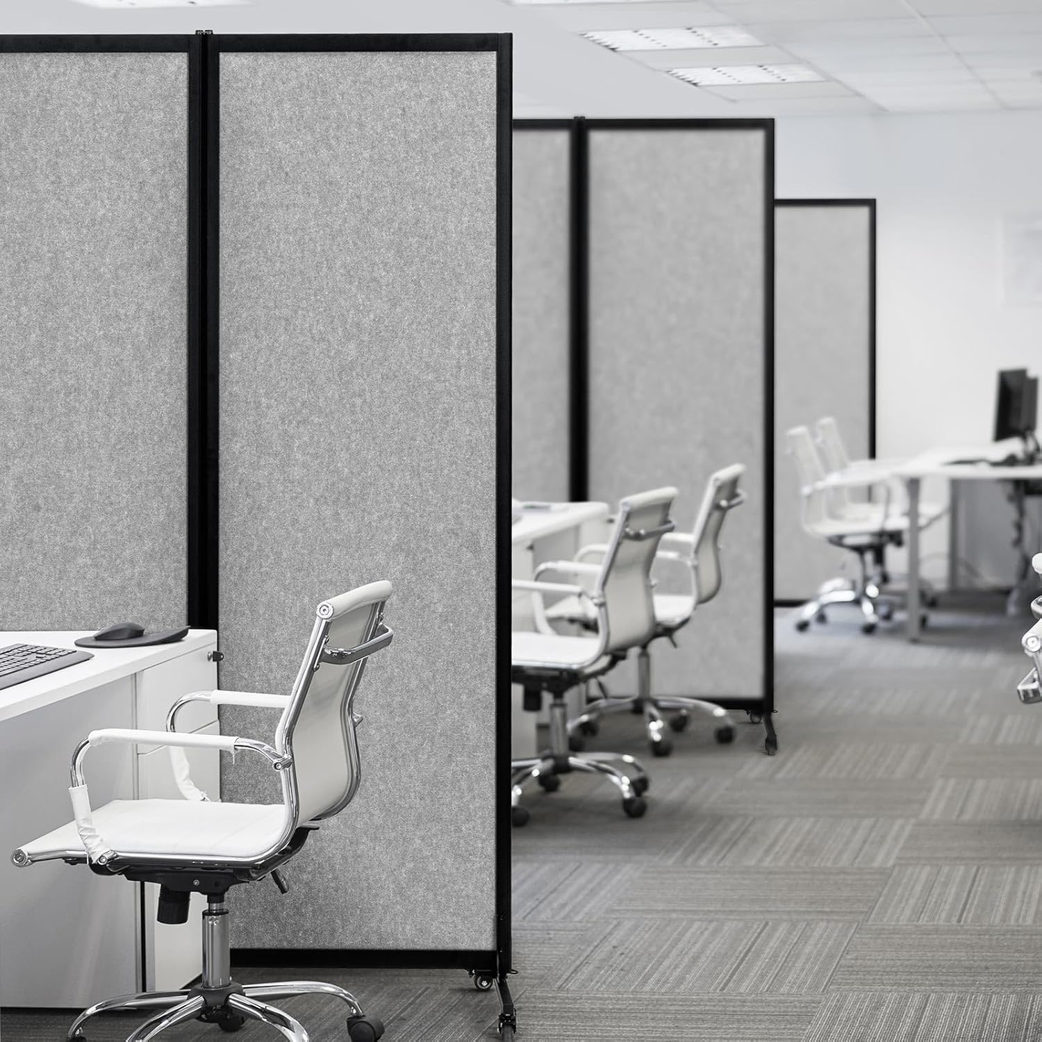 Upgrade Version Room Partition and Divider, Freestanding Rolling Dividers with Wheels,Office Privacy Screen Divider Wall,Classroom Felt Dividers,8'2"L* 6'7"H,4 Panel,Light Grey