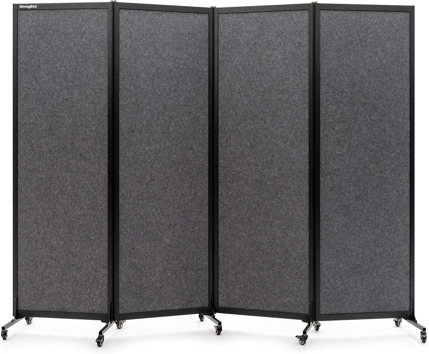 Upgrade Version Room Partition and Divider, Freestanding Rolling Dividers with Wheels,Office Privacy Screen Divider Wall,Classroom Felt Dividers,8'2"L* 6'7"H,4 Panel,Dark Grey