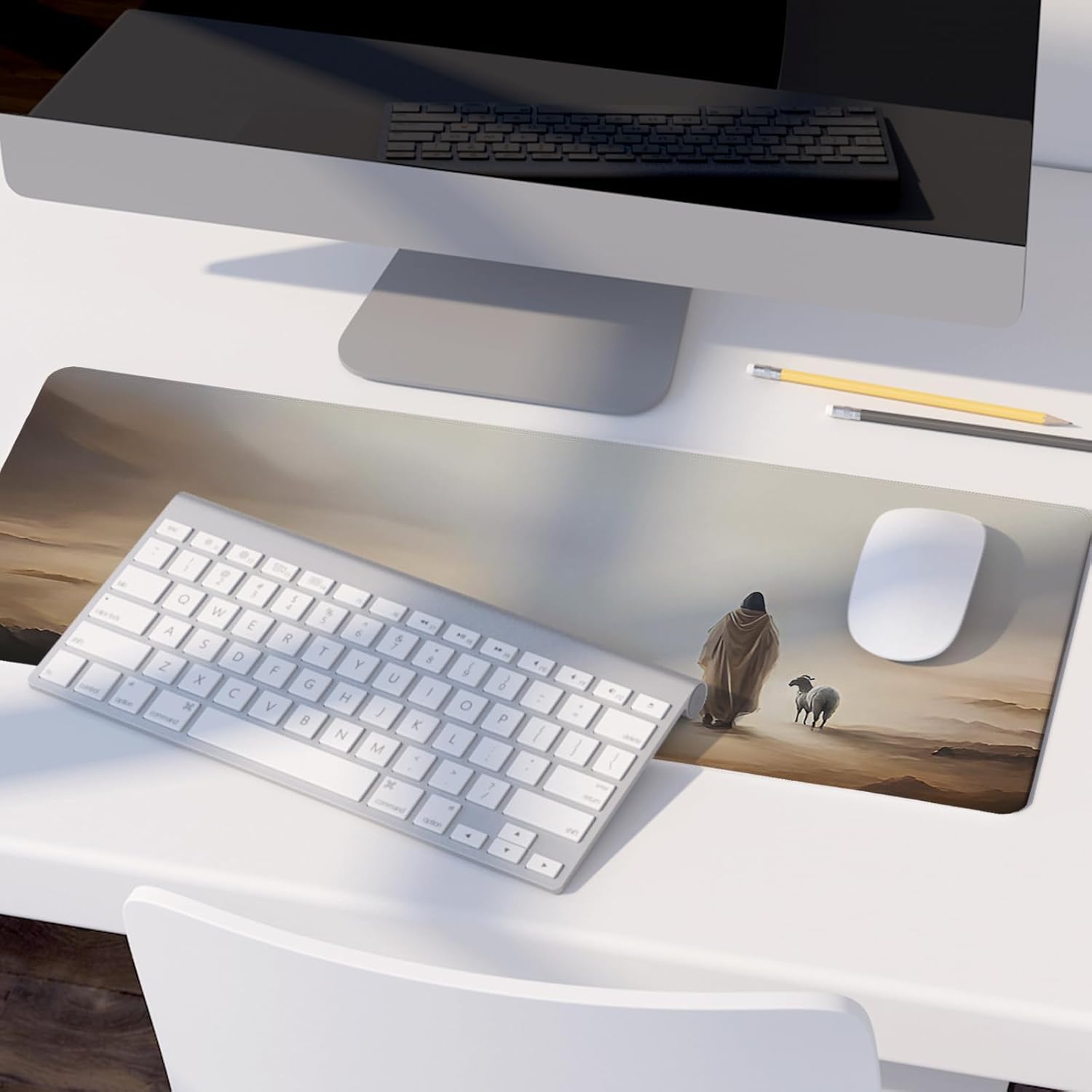 Retro Christian Themed Mouse Pad,Jesus Religious Mouse Pad,Jesus Finds The Lost Lamb Desk Mat,Big Large Vintage Easter Decor Desk Mat,Religious Gifts Christian Gifts for Women,31.5x11.8Inch