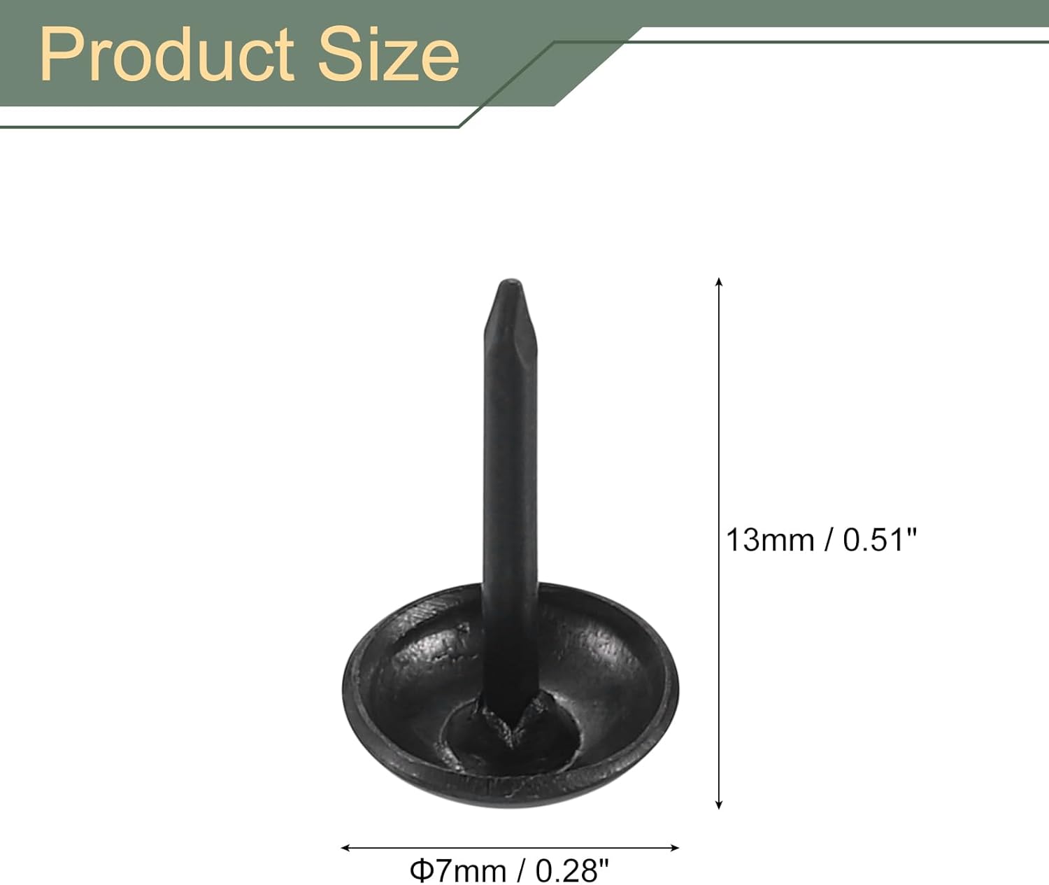 - What You Get - The package comes with 50 pieces of upholstery tacks, with the total height is 13mm/0.51inch, the head diameter is 7mm/0.28inch.